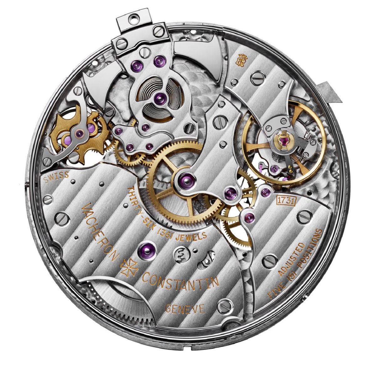 1731型號機芯,江詩丹頓自製手動上鍊機芯,直徑32.8毫米,厚度3.9毫米。擁有65小時動力儲存,配備日內瓦印記、三問報時功能。