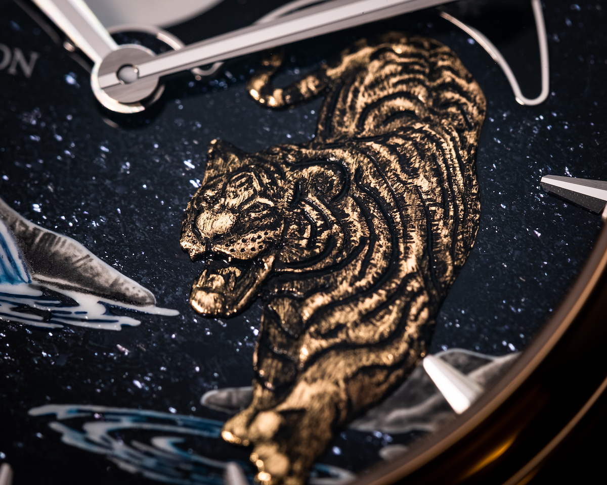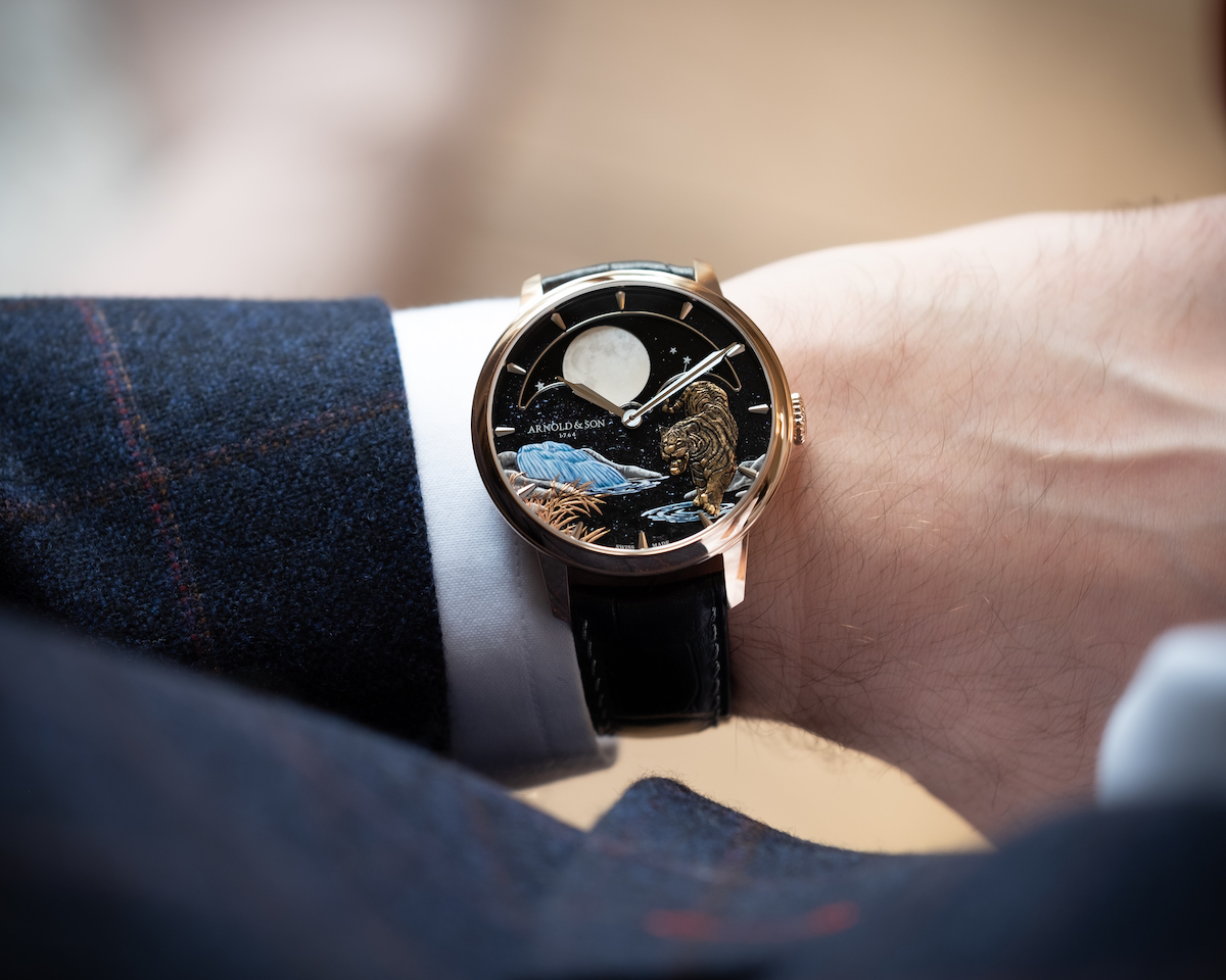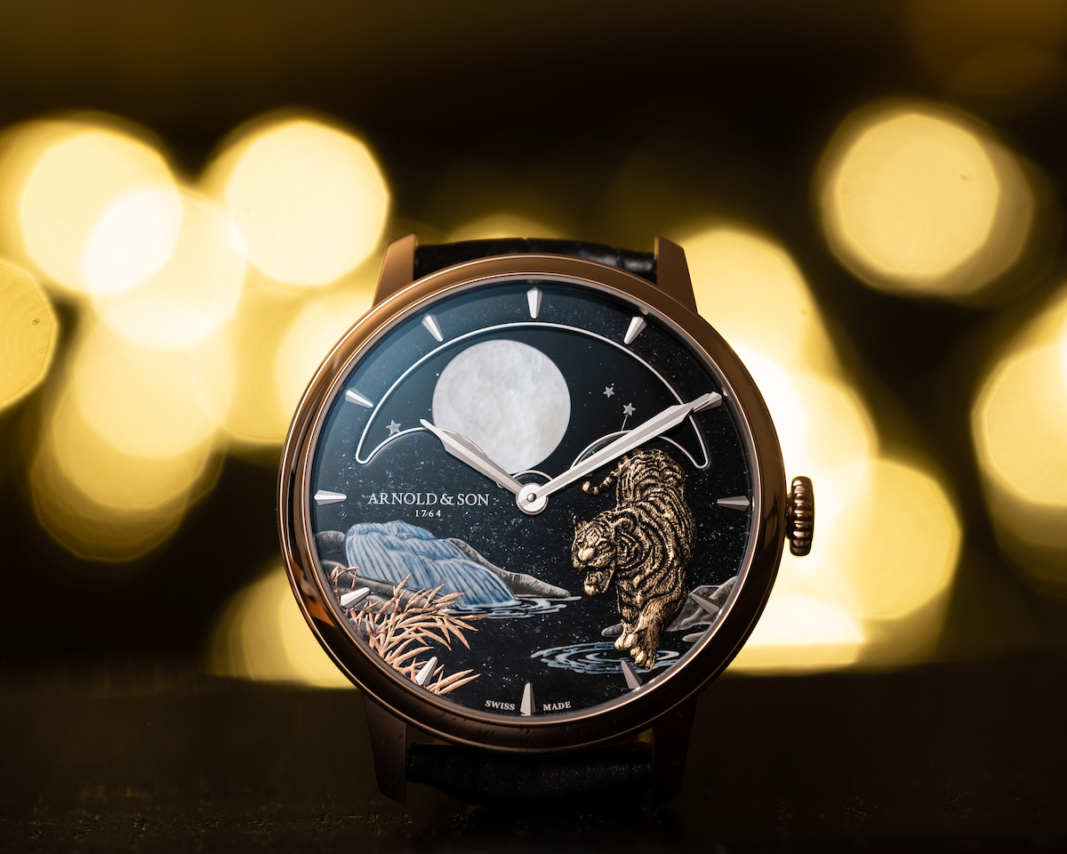 Arnold & Son “Year of the Tiger”金雕微繪恆久月相腕表/錶徑:42mm/機芯:A&S1512手動上鍊機芯/動力儲存:90小時/防水深度:30m/建議售價: NTD 1,680,000
