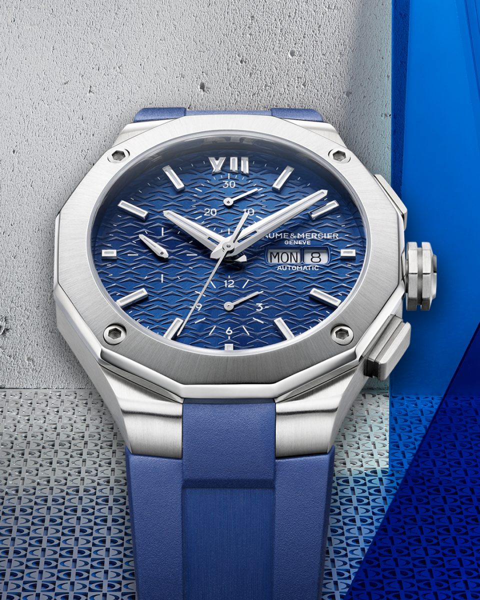 第一批利維拉計時腕錶誕生於1990年代,那些錶款總能捕捉當下的設計特色和潮流趨勢,使該系列隨著不同時代與時俱進地演變。而這段歷史今年有了續篇,推出三種演繹版本的利維拉計時腕錶,直徑均為43毫米。這三款個性鮮明有力的腕錶延續其祖先的傳統,忠於原創款式的設計,利維拉自動上鏈計時腕錶重新演繹傳奇錶款的基本元素:十二邊形錶圈、帶有獨特裝飾的水波飾紋錶盤(象徵著山脈與海洋的邂逅),並搭配可自行更換式錶鍊或錶帶——利用名士研發的「Fast Strap」快拆錶帶更換系統的精鋼錶鍊或橡膠錶帶。1973年原創款的廓形和自由精神都在,但應用當今時代的品味。