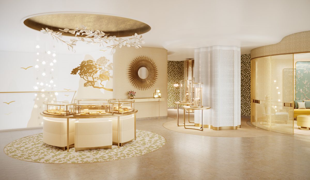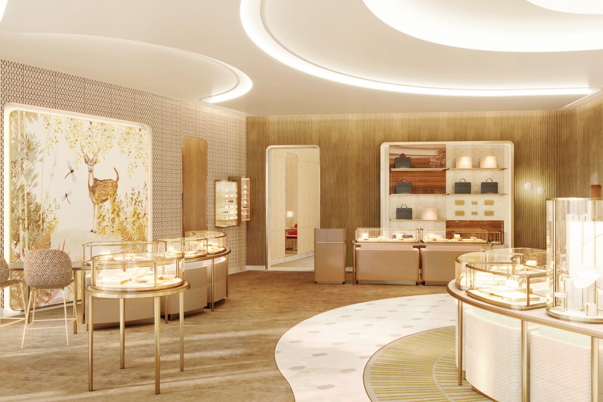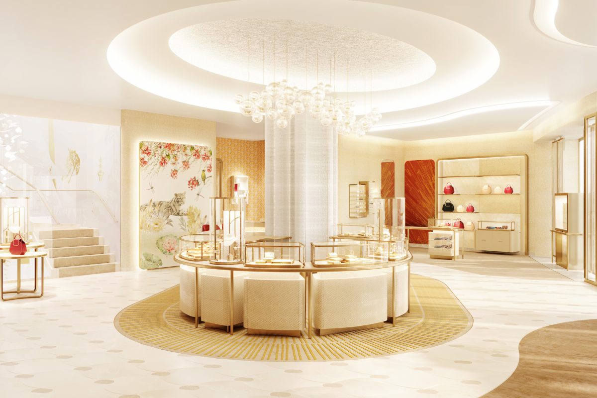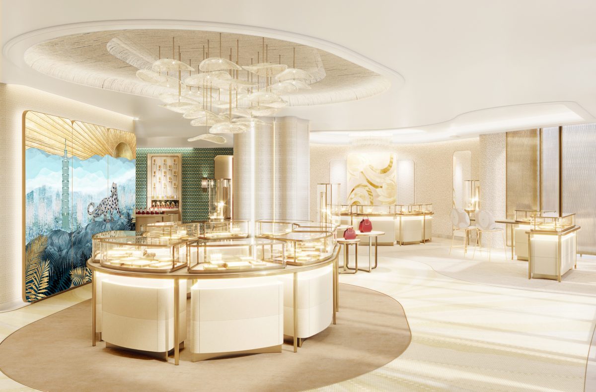 卡地亞台北101旗艦店佔地近280坪,共8區VIP鑑賞區域,打造由3樓至5樓的挑高空間。