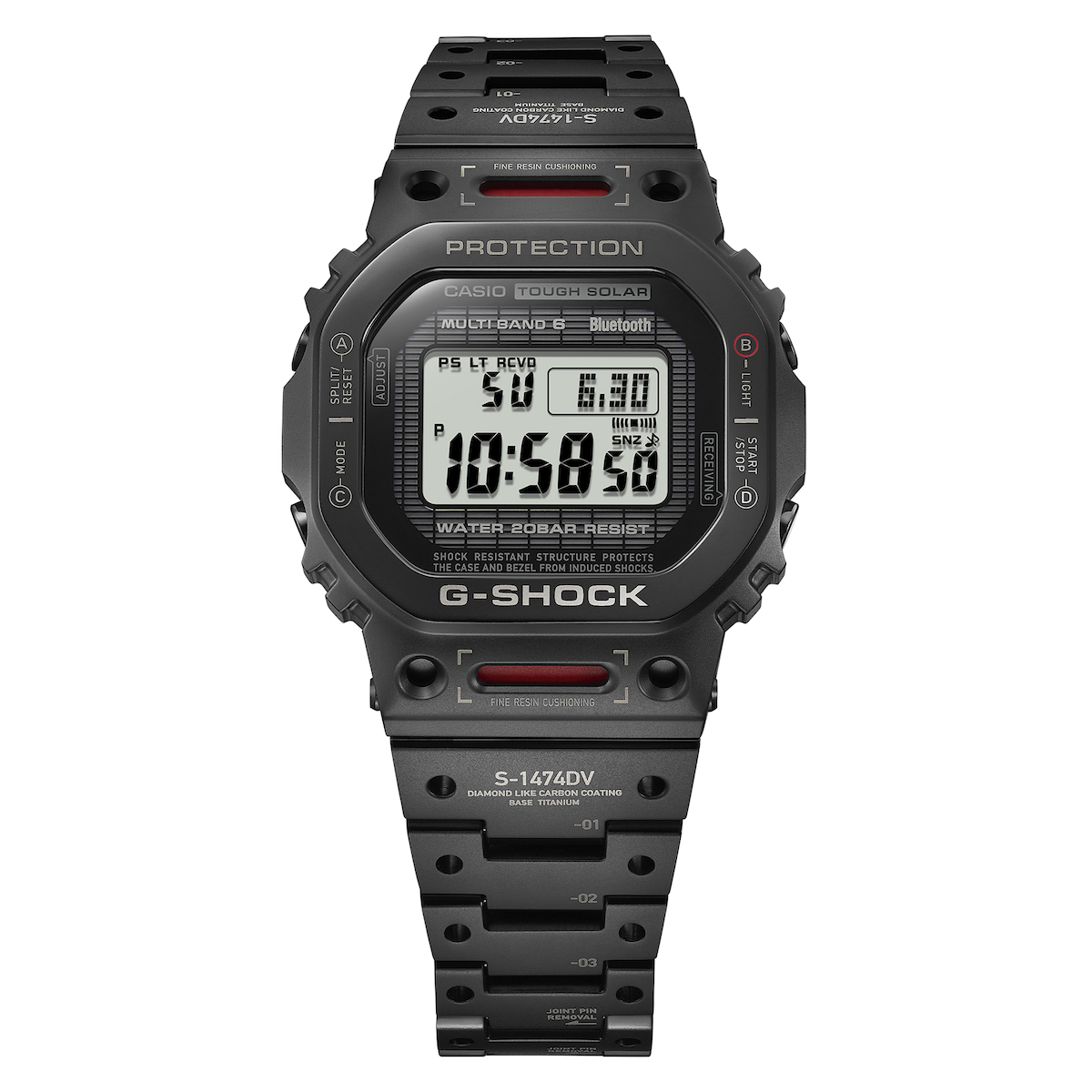 功能上,GMW-B5000TVA搭載BLUETOOTH®藍牙連線功能及MULTIBAND 6世界六局標準電波自動校正時間,透過G-SHOCK Connected應用程式同步校正當地時間,隨時掌握精準時間。