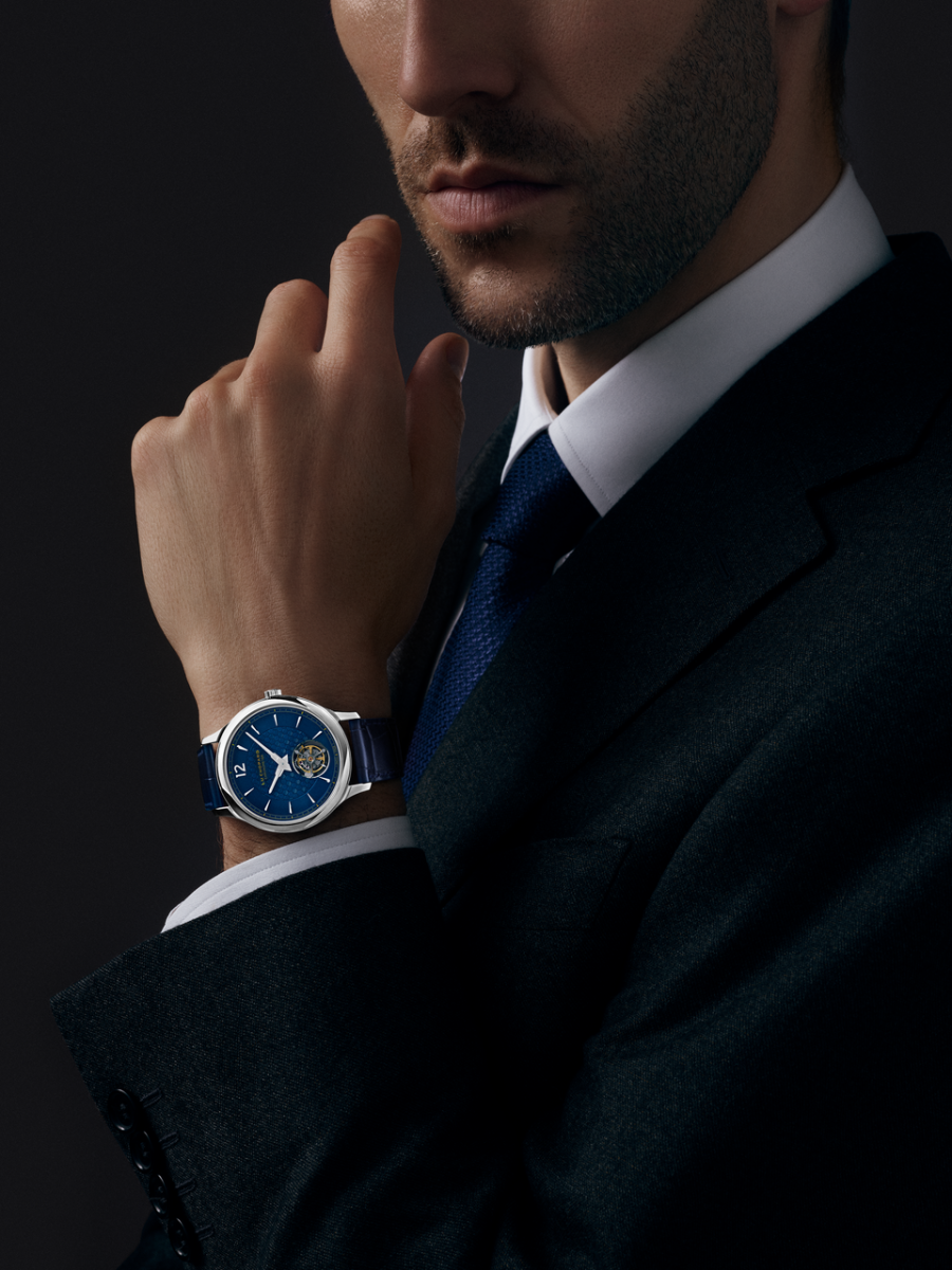 這枚飛行陀飛輪並沒有裝設在上層錶橋,而僅由下層錶橋固定,打造出透明的視覺效果,彷彿懸浮於半空中。同為蕭邦錶廠研發的頂級機芯,L.U.C 96.24-L 型機芯的精密細膩程度不遑多讓,厚度僅有 3.30 毫米,讓 L.U.C XPS Tourbillon Volant 錶款躋身成為最纖薄的飛行陀飛輪腕錶之一,且通過瑞士官方天文台精密時計認證,錶盤上的「Chronometer」字樣於標誌下方鐫刻為證。