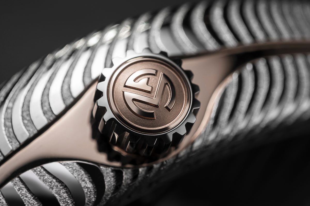 其錶殼、鏤空機芯、錶冠與錶扣皆由內部數控機床從一整塊大馬士革鋼材上精雕細琢而成,並通過品牌獨家酸浸工藝,賦予每一只腕錶獨特的條紋圖案。這一過程的精確計時至關重要,僅需短短數分鐘,確保大馬士革鋼材不會因過度浸泡而變形。與傳統精鋼相比,大馬士革鋼材經過精緻的拋光處理,呈現無可挑剔的光澤與深邃的美感,無疑是對工藝極致追求的完美詮釋。