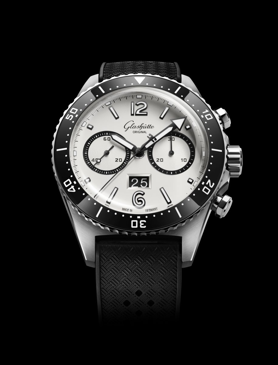 曲折離奇的黑色小說、引人入勝的炭筆素描、惹人遐想的老舊照片:有些事物,即使沒有斑斕色彩,也能讓人回味無窮,而這也是全新 SeaQ 計時腕錶的目標。德國製錶品牌格拉蘇蒂原創的專家系列再添新成員,以經典的黑白極簡風格,重新詮釋這款經典雋永的運動型腕錶,明亮「銀幕」般的錶盤勾勒出人生冒險旅程的背景。