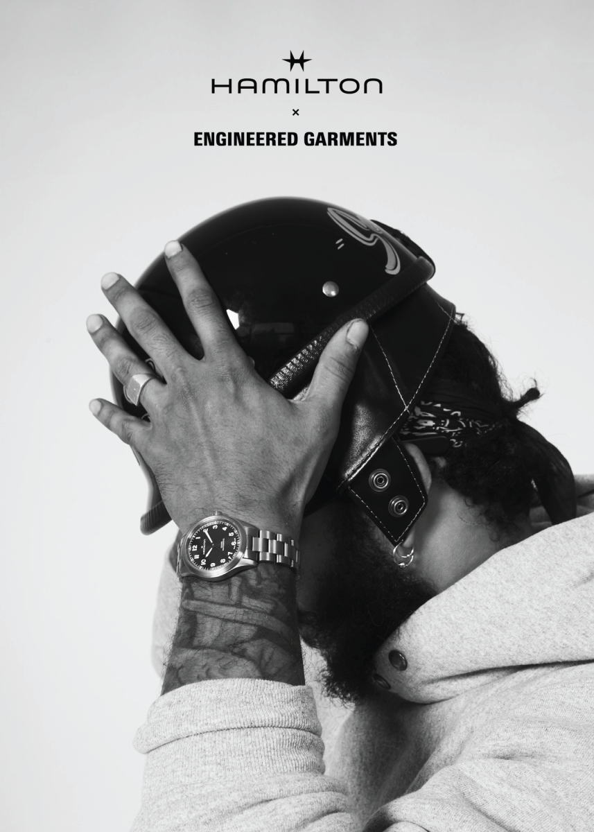 總部位於紐約的設計公司 Engineered Garments 在其 25 年的歷史中,引用創始人鈴木大器 (Daiki Suzuki) 祖國日本的設計元素,並參考經典的美式風格主打單品,打造出完全屬於自己的美學設計。鈴木從工裝、軍裝和運動服中汲取了廣泛的靈感,強調實用性,並精心挑選兼具實用和外觀的材料。而漢米爾頓的美式設計傳統和對工藝的承諾突顯了雙方夥伴關係的正統性,此次兩個品牌合作的基礎,即建立在共同的價值觀和設計原則上。