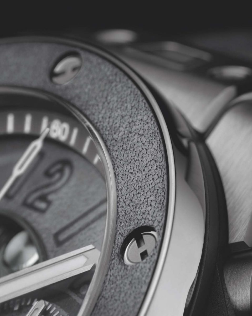 灰霾的凌晨四點巴黎街頭,空氣中瀰漫著末世前的神祕 ! 宇舶執行長Ricardo Guadalupe 表示「Big Bang Unico Berluti冷灰計時碼錶,將工業風的高階灰色調調覆蓋整只腕錶,展現品牌罕見的極簡主義創作風格。」