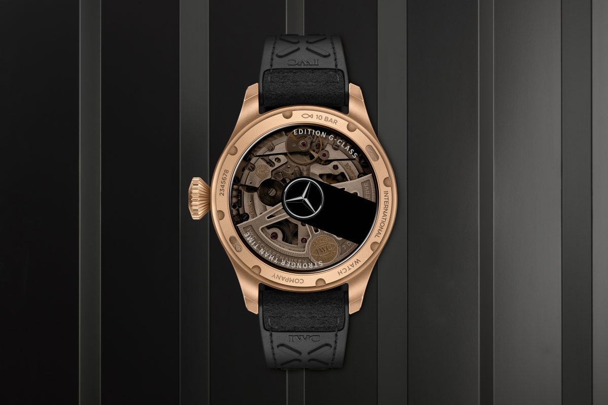 大型飛行員腕錶「AMG G 63」特別版(型號IW501201)的錶殼和錶冠採用18K Armor Gold®製造,搭配黑色錶盤和黑色橡膠錶帶及超細纖維襯墊。黑金配色的靈感來自近期發佈的Mercedes-AMG G 63 「Grand Edition」車漆塗裝和內飾。Armor Gold®是一種新型態合金,把黃金的硬度提升到全新層次,使這種相對較軟的貴金屬更能抵抗外部影響。由於經過改良的微結構,這種特殊合金比傳統的18K紅金更堅硬,也更加耐磨。噴砂表面和拋光邊緣的結合,賦予這款大型飛行員腕錶高雅而現代的風貌。