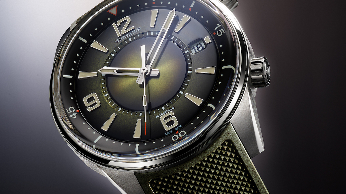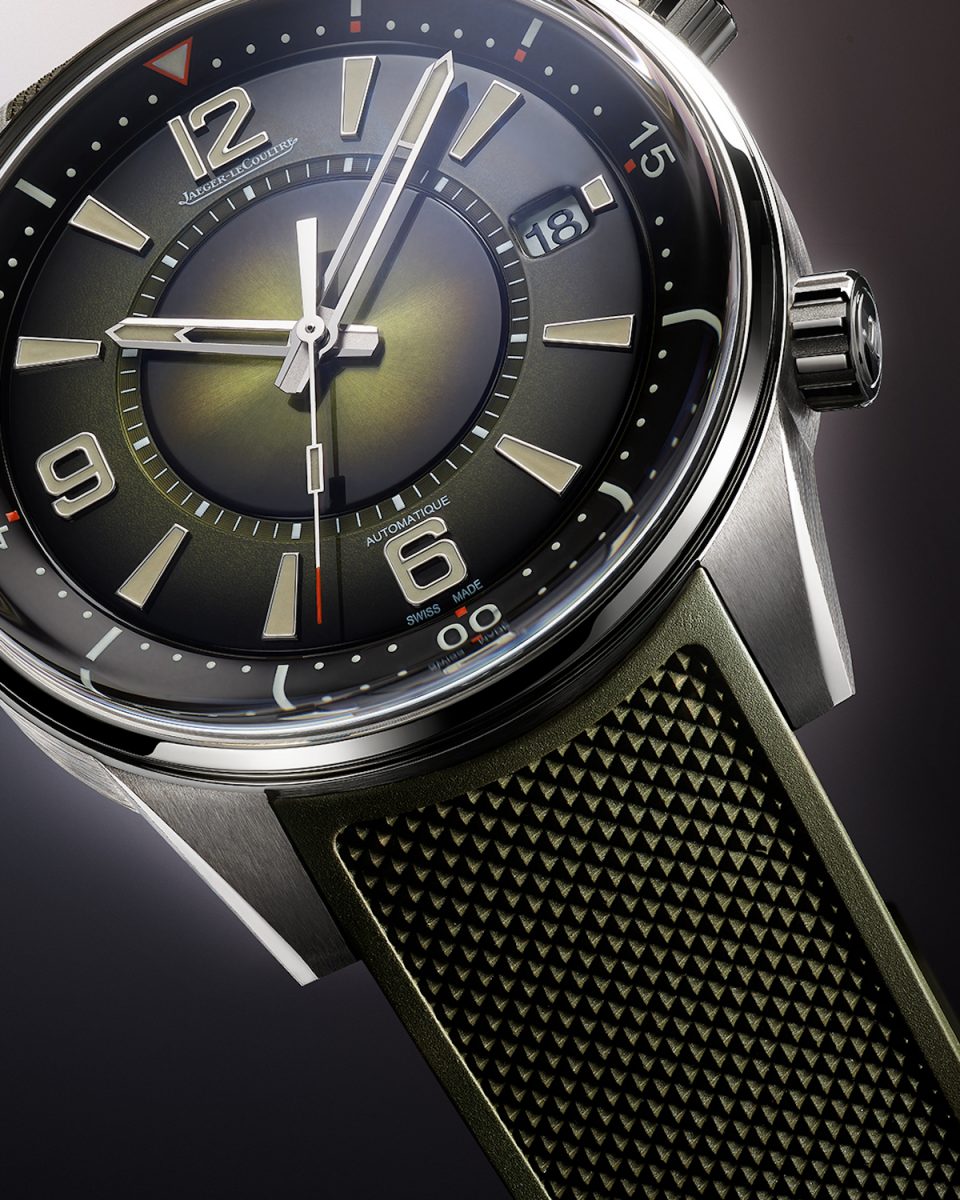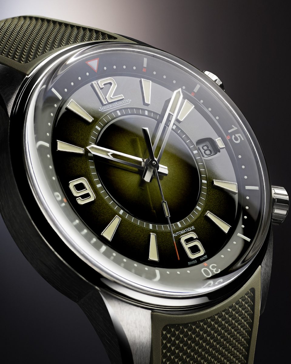 Jaeger-LeCoultre Polaris Date日期顯示腕錶的全新綠色錶盤彰顯這款作品適合在不同環境使用的特性,堅固的啞光飾面錶殼令這一點不言而喻。香草色Super-LumiNova®夜光塗層時標延續此系列的傳統,