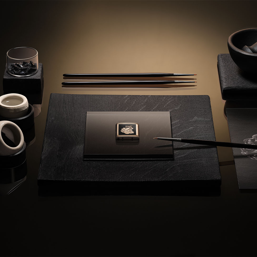 輕輕翻轉錶殼,盤踞於18K金質祥雲之間的手工鐫刻靈蛇矚目迷人,在亮澤的黑色大明火琺瑯背景襯托下栩栩如生。蛇身的拋光表面和鱗甲的微小細節皆以黑色銠金屬手工勾勒,與捕捉並折射光線的噴砂質感雲朵形成鮮明對比,光影流轉間更顯靈動。