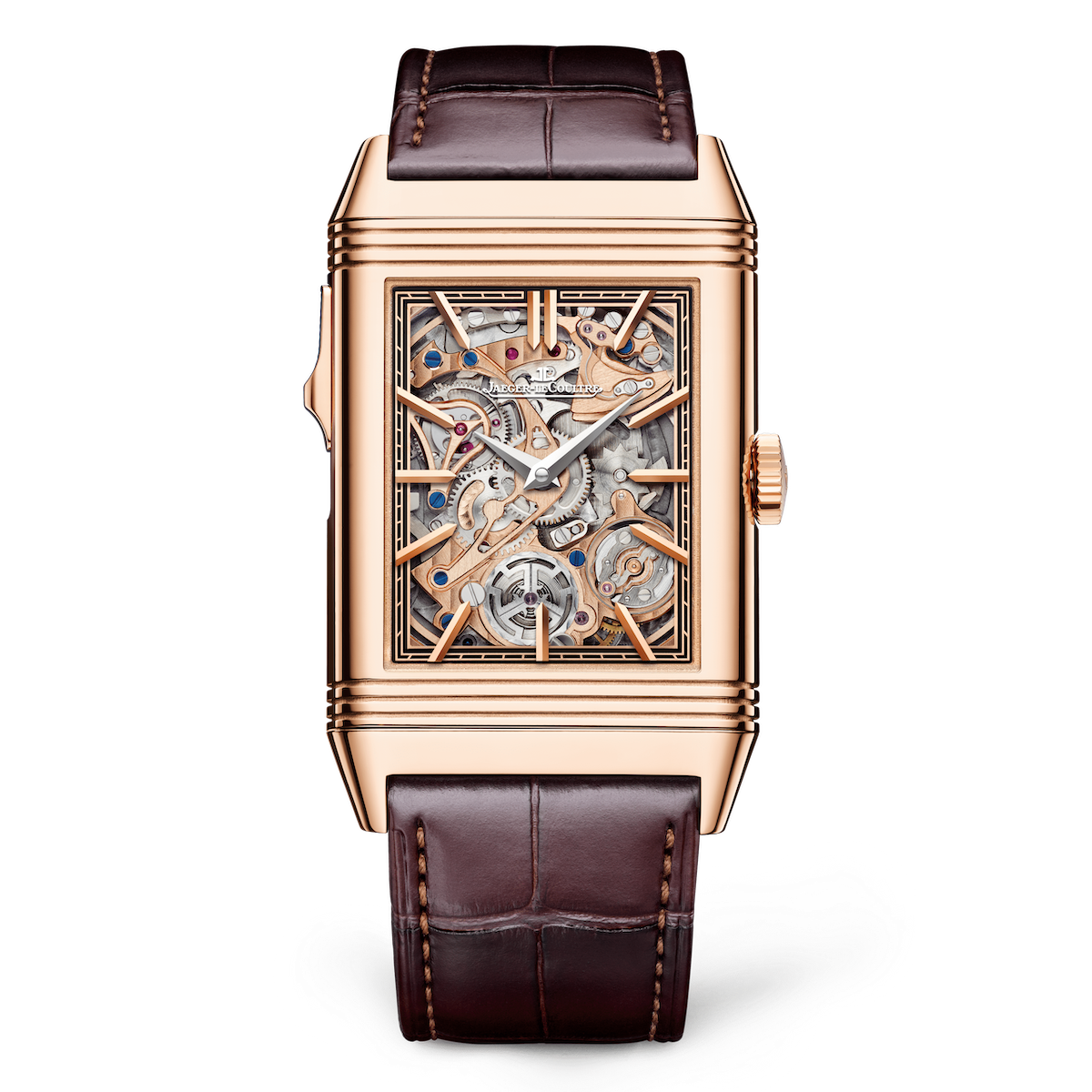 Reverso Tribute Minute Repeater翻轉系列三問報時腕錶彰顯精密複雜的技術工藝與獨具匠心的精湛手工技藝,突顯Reverso翻轉系列腕錶雋永現代的設計特色,融匯積家大工坊的技術成就及對全新視覺表達方式的不懈追求。
