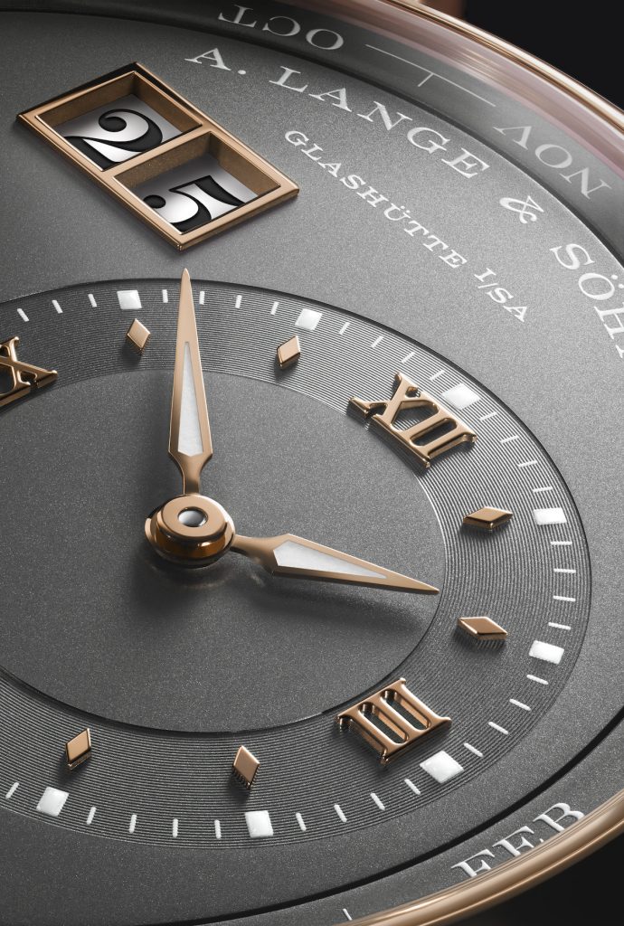 Lange 1 Perpetual Calendar備有兩個款式可供選擇。18K玫瑰金款搭配灰色實心銀錶盤,以及18K白金款搭配實心18K玫瑰金錶盤(限量發行150枚)。採用完美配色的18K玫瑰金或18K鍍銠黃金指針和嵌塊刻度(18K玫瑰金款設有夜光顯示),為和諧的設計錦上添花。18K白金錶款搭配深棕色皮革錶帶,而18K玫瑰金錶款則搭配紅棕色皮革錶帶。