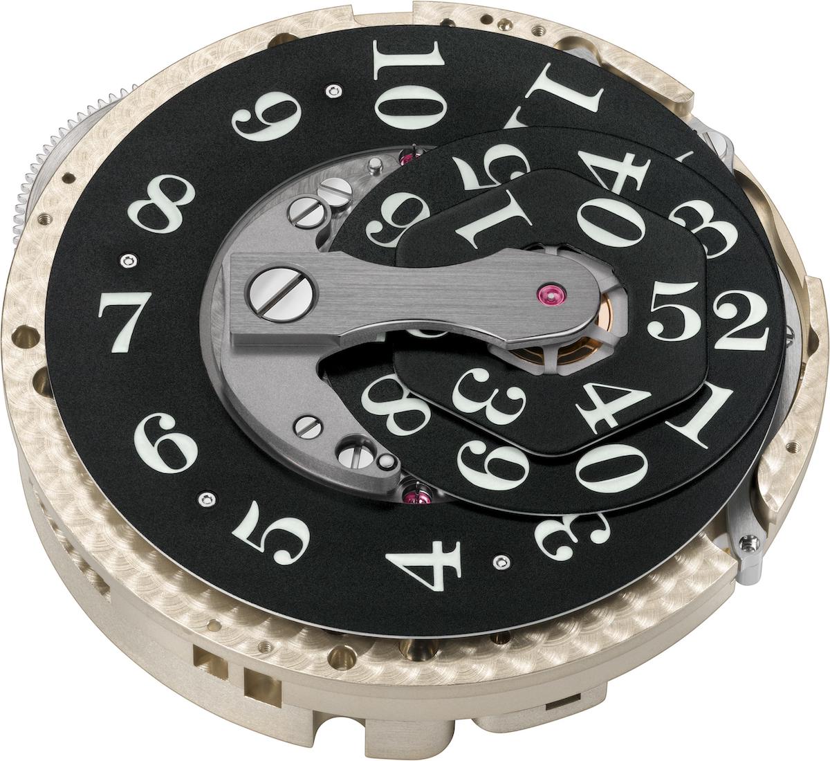 ZEITWERK 配備三個圓盤跳字裝置,以電子方式顯示時間,自 2009 年誕生以來一直躋身於最先進的機械腕錶之列。為了確保卓越的讀時功能,除了其機械裝置外,朗格產品研發人員幾乎對每項細節皆抱存疑態度,繼而對之尋根究底。除了十分鐘和個位分鐘圓盤外,跳字裝置還設有大型小時圈,幾乎橫跨整個機芯的直徑。所有數字尺寸相等,精確轉換,佩戴者可輕鬆地從左至右讀時。