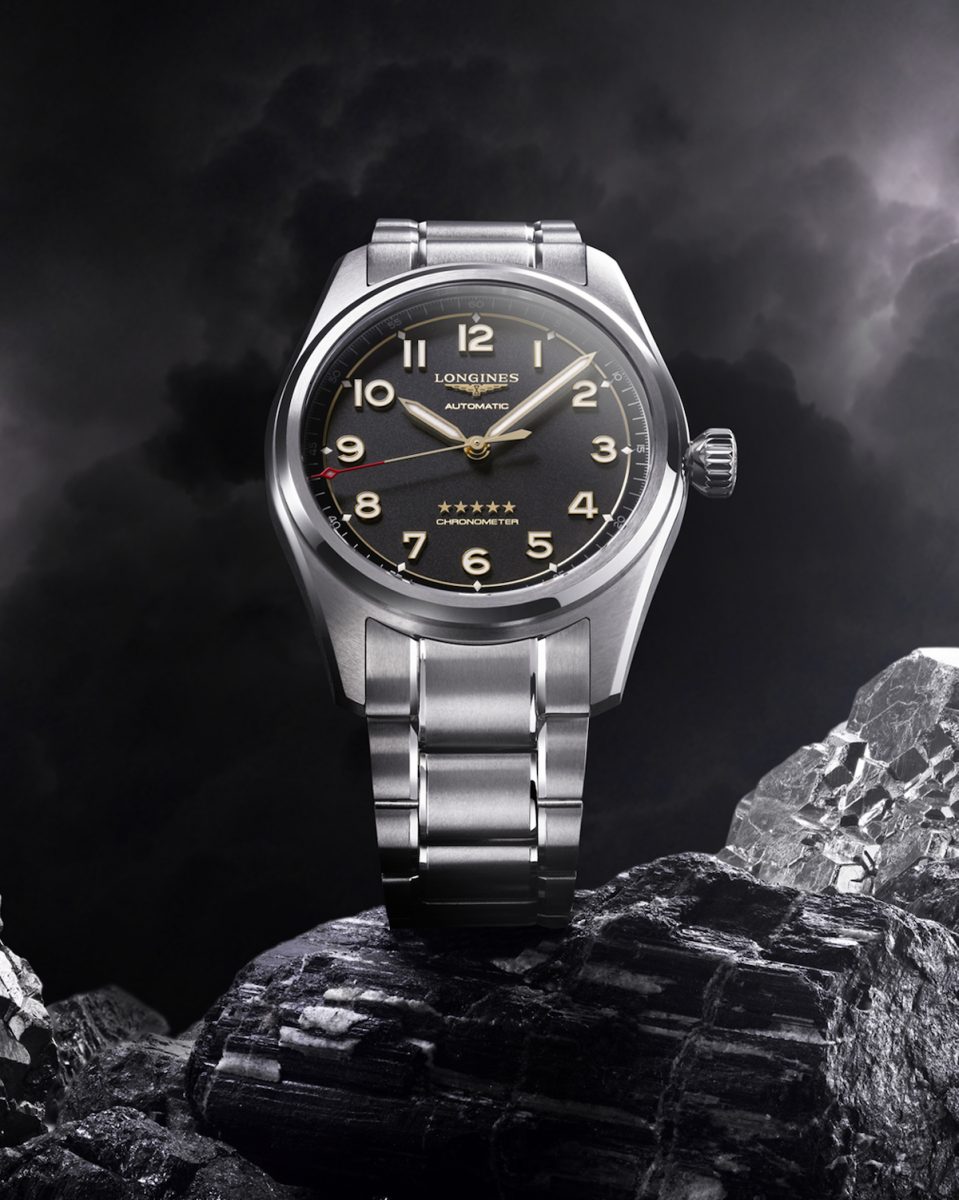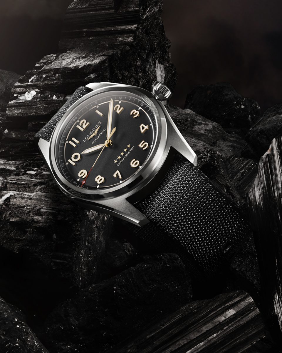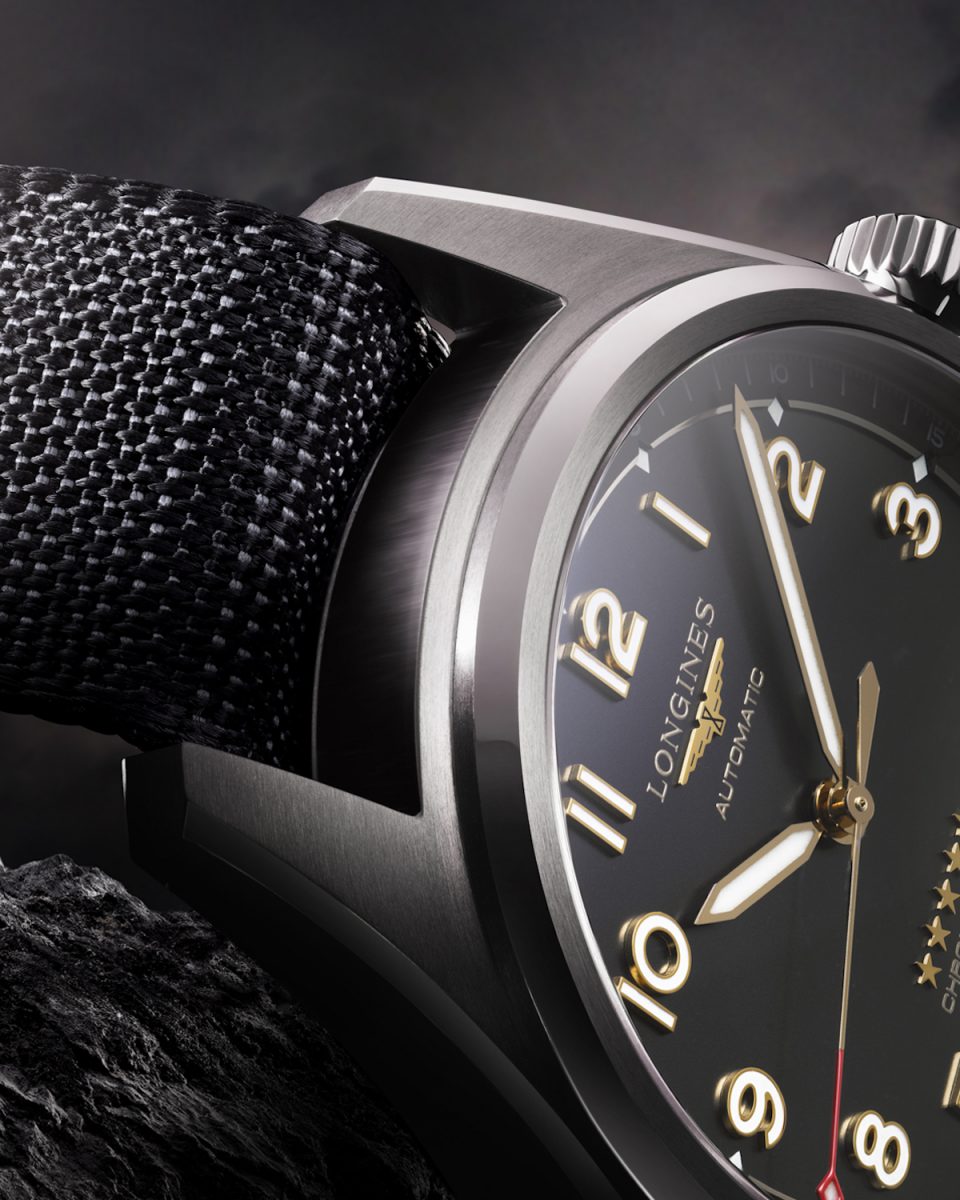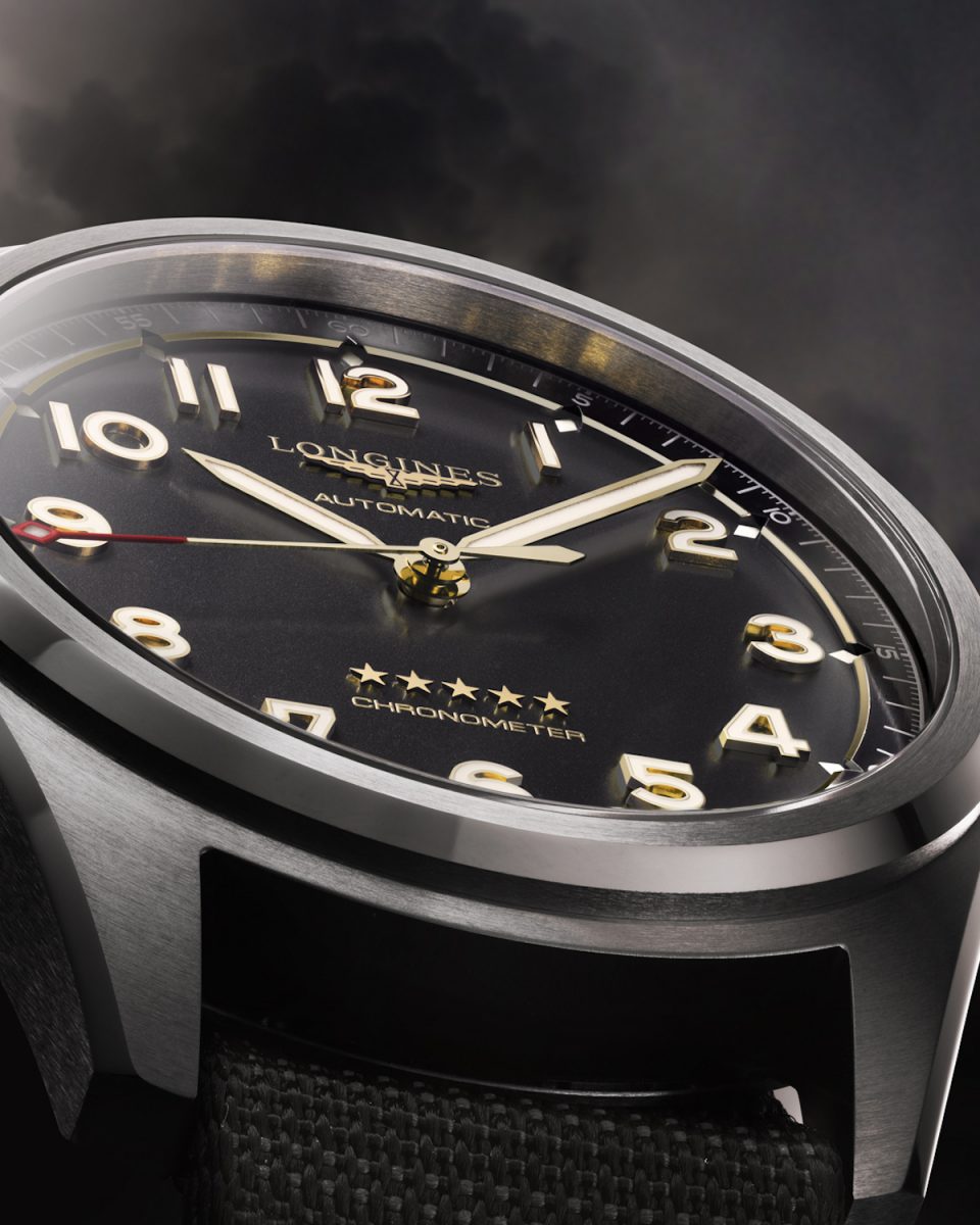 彷彿在提醒我們這些作品堅固無比,全新Longines 浪琴表Spirit先行者系列腕錶透過暗沉色調與巧妙微光營造絕佳對比效果。指針、數字、星辰與飛翼沙漏具備柔和的黃金(1N)光芒,讓腕錶在顏色與材質之間取得完美平衡——無日期視窗的設計提升了這種平衡感,並且進一步強調腕錶的航空式對稱性。