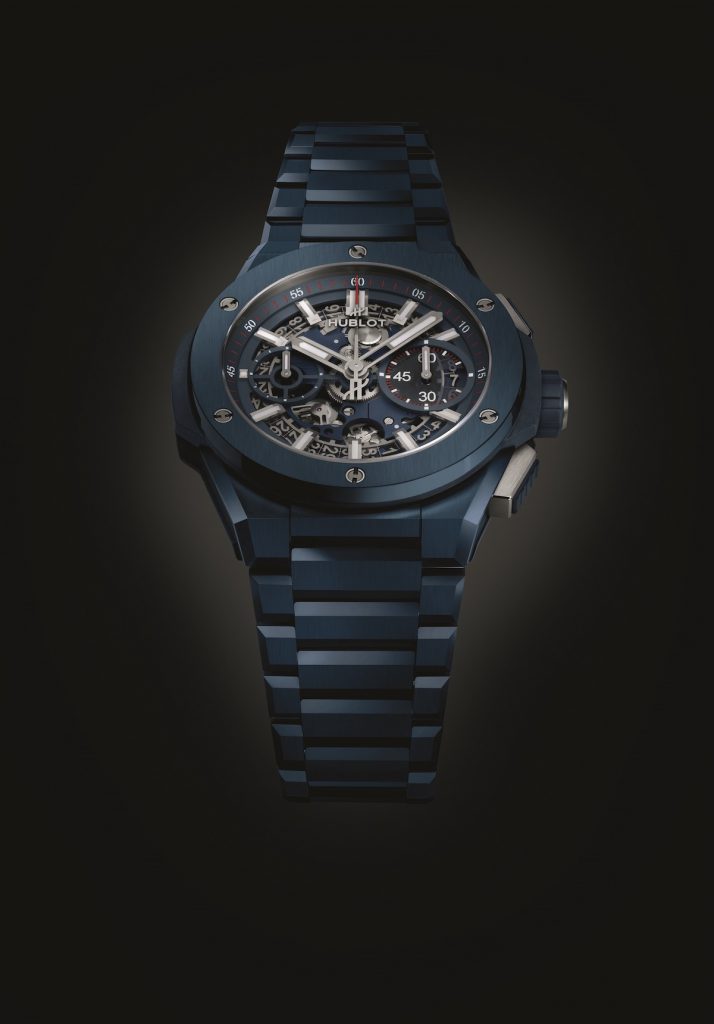 2020 年Big Bang Unico系列首次推出一體式金屬鍊帶計時碼錶,2021年新添三款陶瓷材質,分別是銀灰、深藍以及霧白。宇舶獨家高科技陶瓷材質具有高硬度抗刮特性,42毫米錶殼搭配同色系鏤空面盤與錶鍊,呈現內斂沉穩的視覺效果,散發自信優雅。