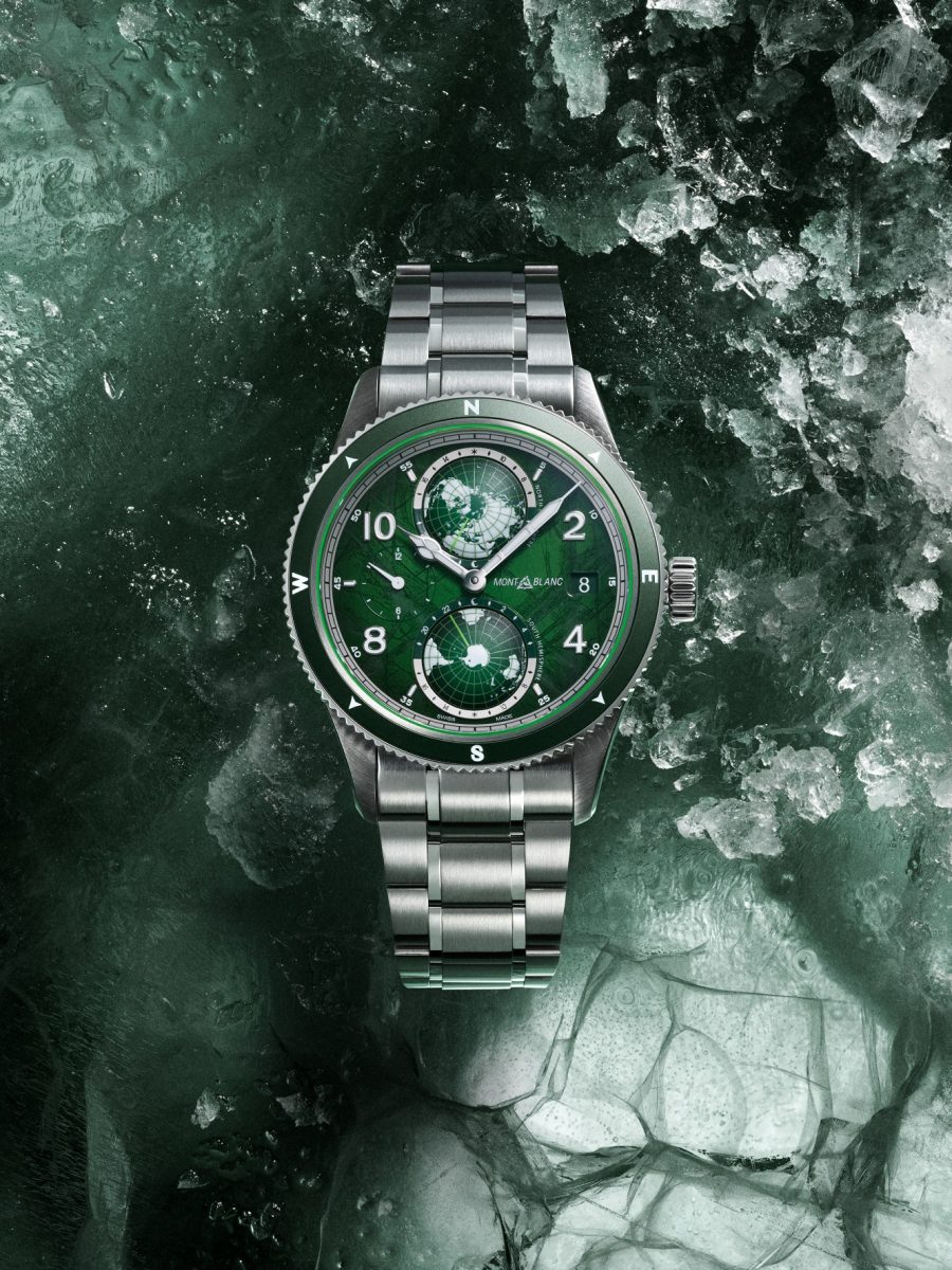大自然可能是世界上最難解的謎團之一,激發了許多探險家、冒險者和科學家周遊世界,嘗試更深入了解其奧秘。其中的奧秘之一就是綠色冰山,可見於環繞南極洲由冰川形成的南冰洋。冰山通常是藍色或白色的,但這些巨大冰體偶爾會呈現神秘的深綠色,而這個現象正是全新MONTBLANC 1858零氧系列的靈感之源。此系列展現了山岳探險精神和南極洲壯麗的冰川景觀,共推出三款新品:MONTBLANC 1858系列Geosphere世界時間零氧腕錶、MONTBLANC 1858系列自動計時零氧腕錶、MONTBLANC 1858系列日期顯示自動零氧腕錶。