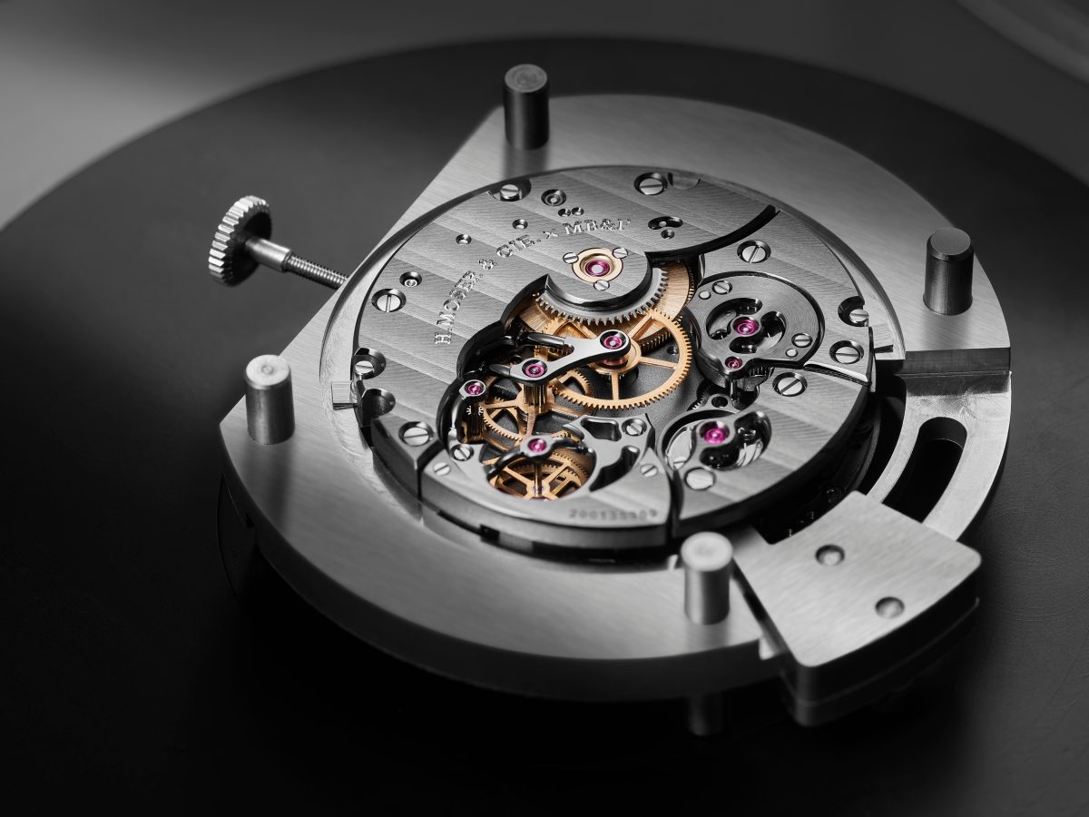 這枚非凡時計搭載部分鏤空的3D立體手動上鏈HMC 906機芯,就像立體雕塑一樣讓人可以欣賞到機芯的一些重要零件。