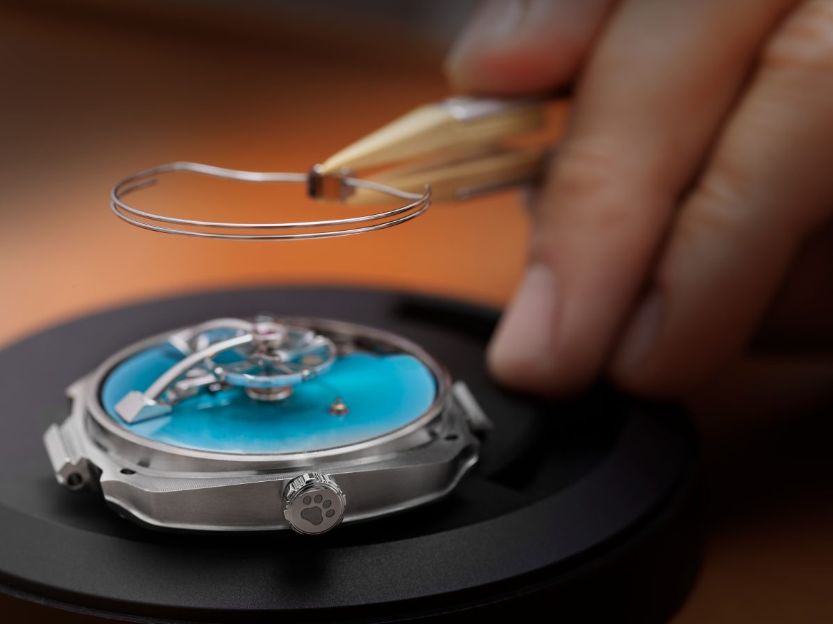 H. Moser X MB&F Streamliner Pandamonium,具有以迷你熊貓DJ為主角的三問報時複雜功能,而該熊貓已成為MB&F在Only Watch活動上的招牌。疾速者腕錶的核心是專為Only Watch獨家開發的3D立體機芯,不會應用在任何其他錶款上。三問報時機制在全新配色的煙燻錶盤上展現,不論在聽覺或視覺上都令人著迷。錶盤去除品牌標誌和時標,展示亨利慕時的極簡主義哲學,同時突顯了MB&F特有的大型懸浮平衡擺輪。MB&F與亨利慕時在這件作品中巧妙融合兩個品牌的DNA,並以獨有的節奏交織各自的代表性元素。這枚腕錶展現卓越的工藝與難得一見的精巧詩意。
