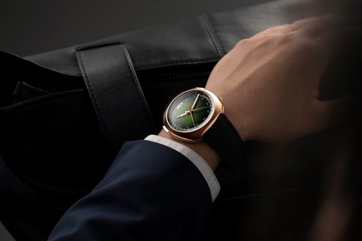 過去十年,亨利慕時的營收增加八倍,年產量增長五倍,成為獨立製錶領域的領導品牌。隨著這項增長,品牌開設多個專門銷售點,特別是在香港和上海,並在全球各地發展業務,於亞洲、中東、美洲及中國設立子公司。這些專屬空間的概念和外觀以簡潔的方式呈現,非常明確的反映品牌理念與風格,同時結合傳統和創新元素,展現出一種具有藝術性的挑釁意味與玩味精神。為了紀念這個重要的轉折點,亨利慕時推出一款腕錶,並僅在其專賣店和線上平台獨家發售。對於這枚極具象徵意義的時計,品牌自2020年疾速者系列問世以來,首次推出採用紅金打造的自動計時錶款,並選擇搭配橡膠錶帶而非金屬鏈帶。橡膠錶帶巧妙地融入錶殼之中,賦予腕錶耳目一新的面貌,將5N紅金的溫暖光芒與極光綠錶盤的複雜色調相結合。疾速者自動飛返計時碼錶專賣店限定版完美詮釋自信動感與雋永優雅。