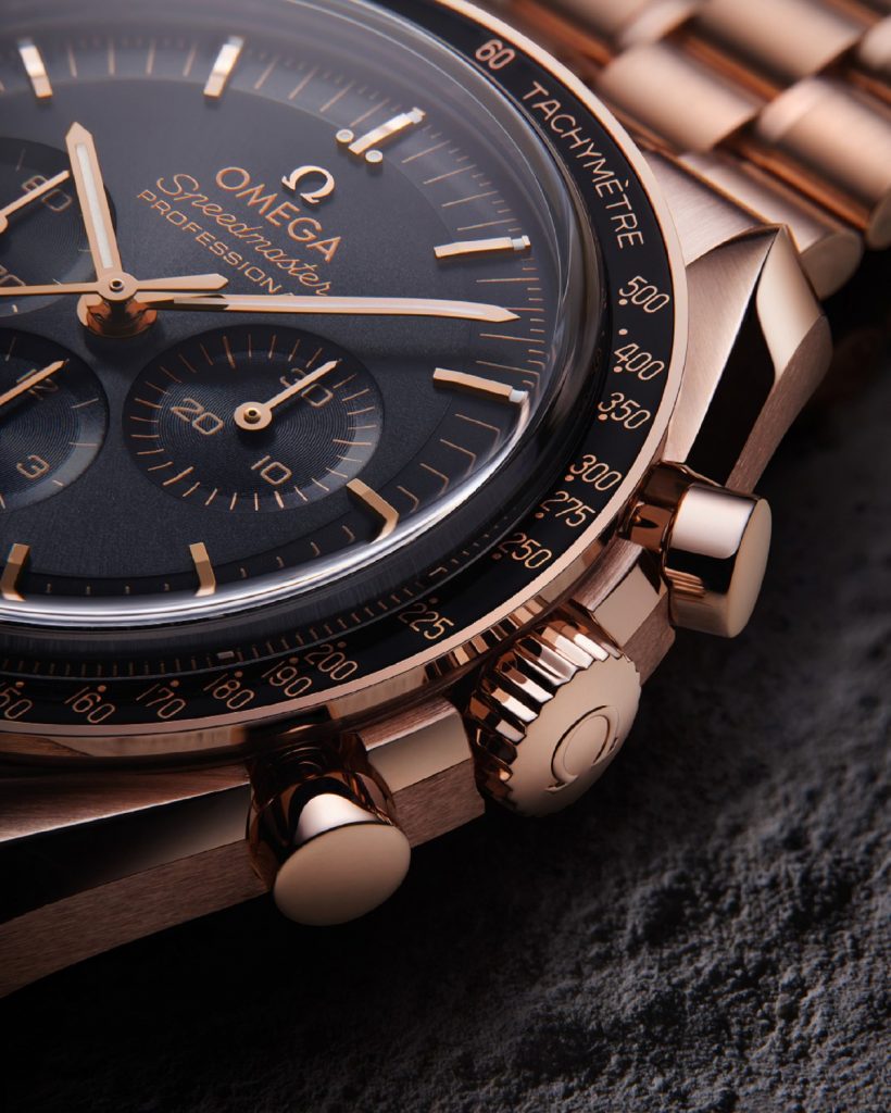 就連錶盤也呈現歐米茄打造升級版登月錶時對細節的注重。為了對應3861機芯的振頻,分鐘刻度環現在被分成3區,而非之前錶款的5區,這是呈現該品牌對精準度抱持嚴格標準的另一個範例。