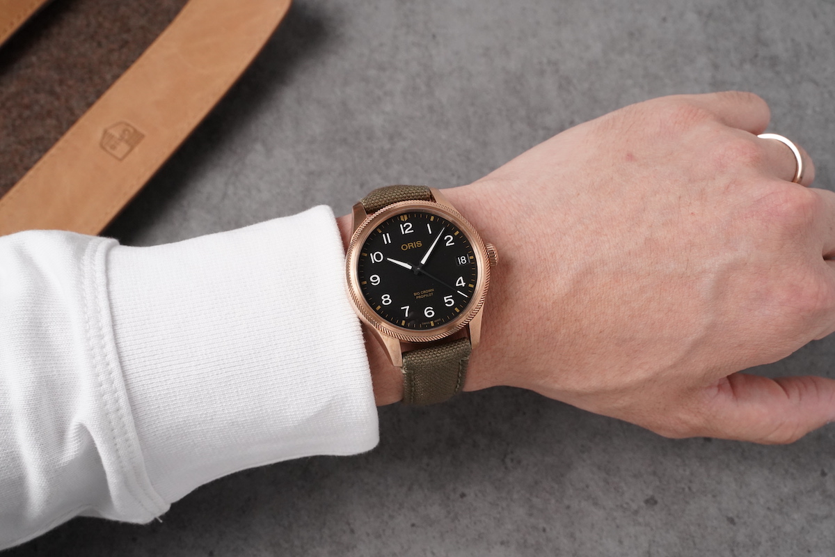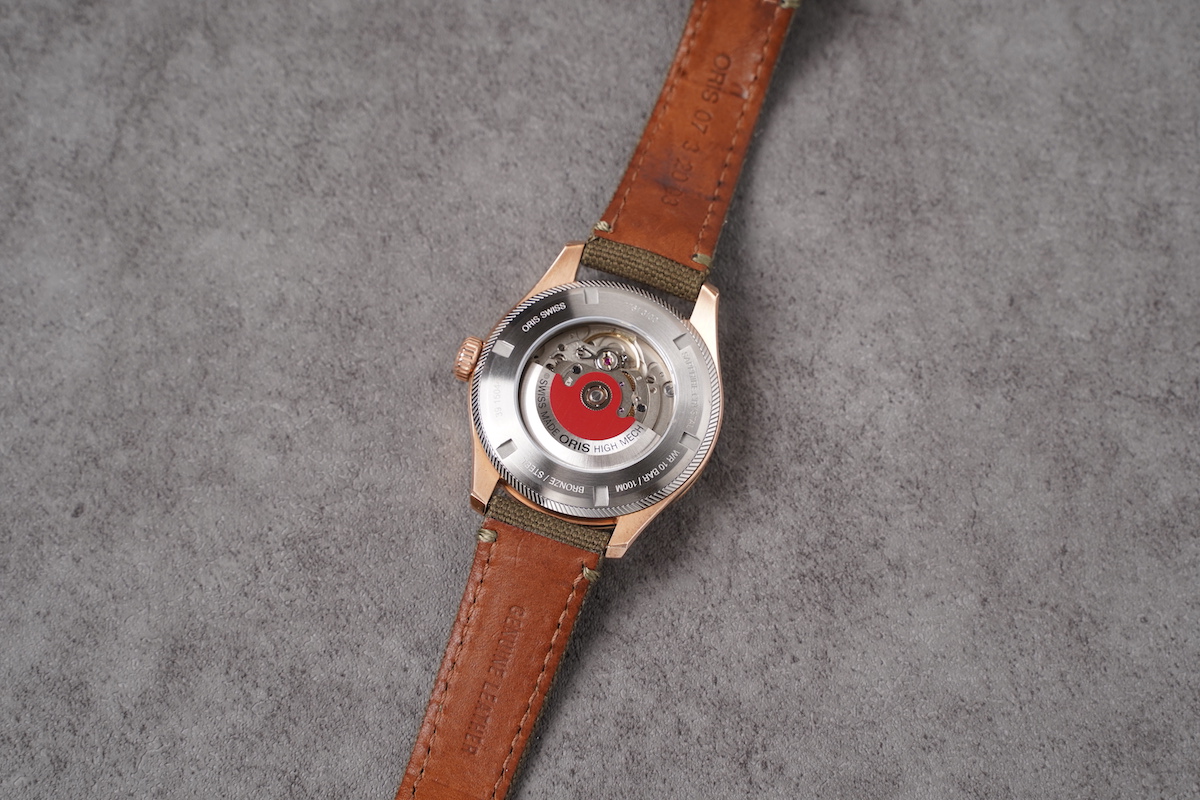 時尚的外觀,搭載每只Oris腕錶都擁有的瑞士製造機械機芯,此款全新的青銅腕錶,使用的是大日期功能的自動上鍊機芯,青銅將隨著時間流逝而自然地展現獨特面貌,陪同配戴者走過許多時光。