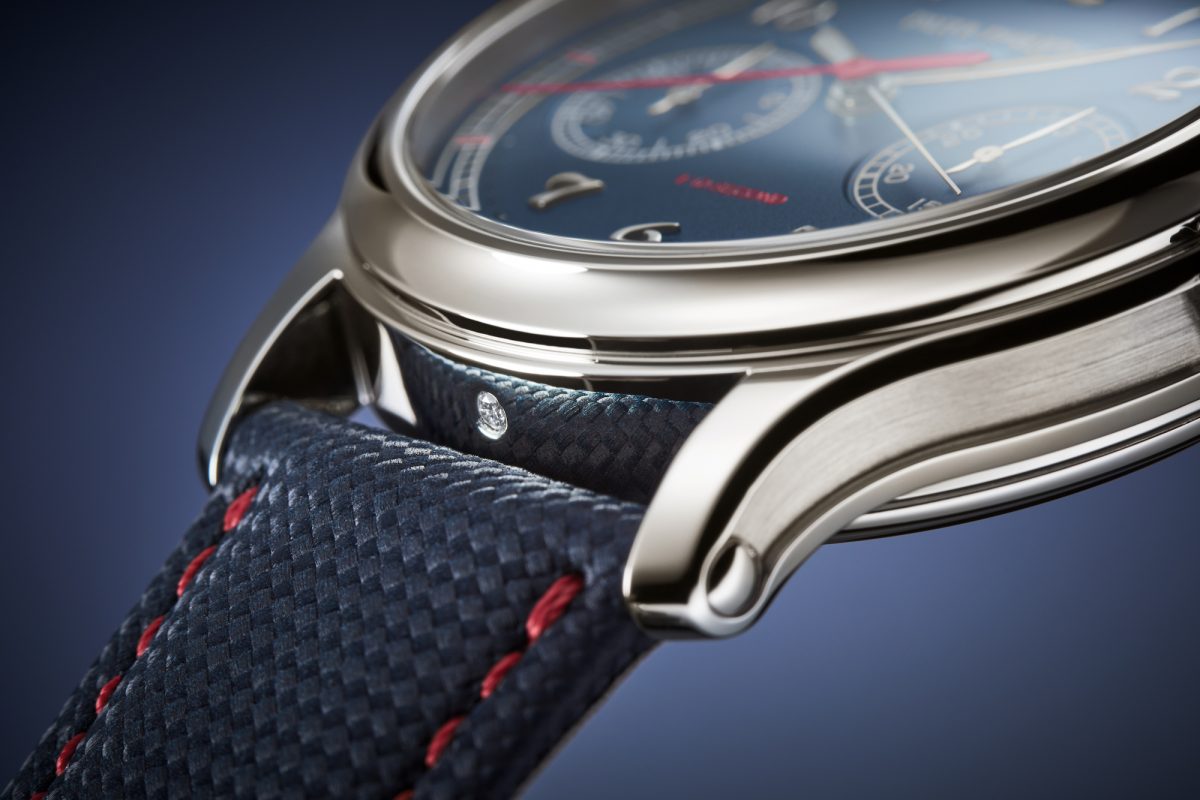 新款頂級複雜功能時計屬於少量製作,配備鉑金錶殼,錶側經中空及磨拭加工。紅色塗漆10分之1秒秒針由Silinvar®物料製造,深藍色小牛皮錶帶添上凸面織物圖案,與紅色縫線對比分明,種種細節令腕錶倍添運動氣息。