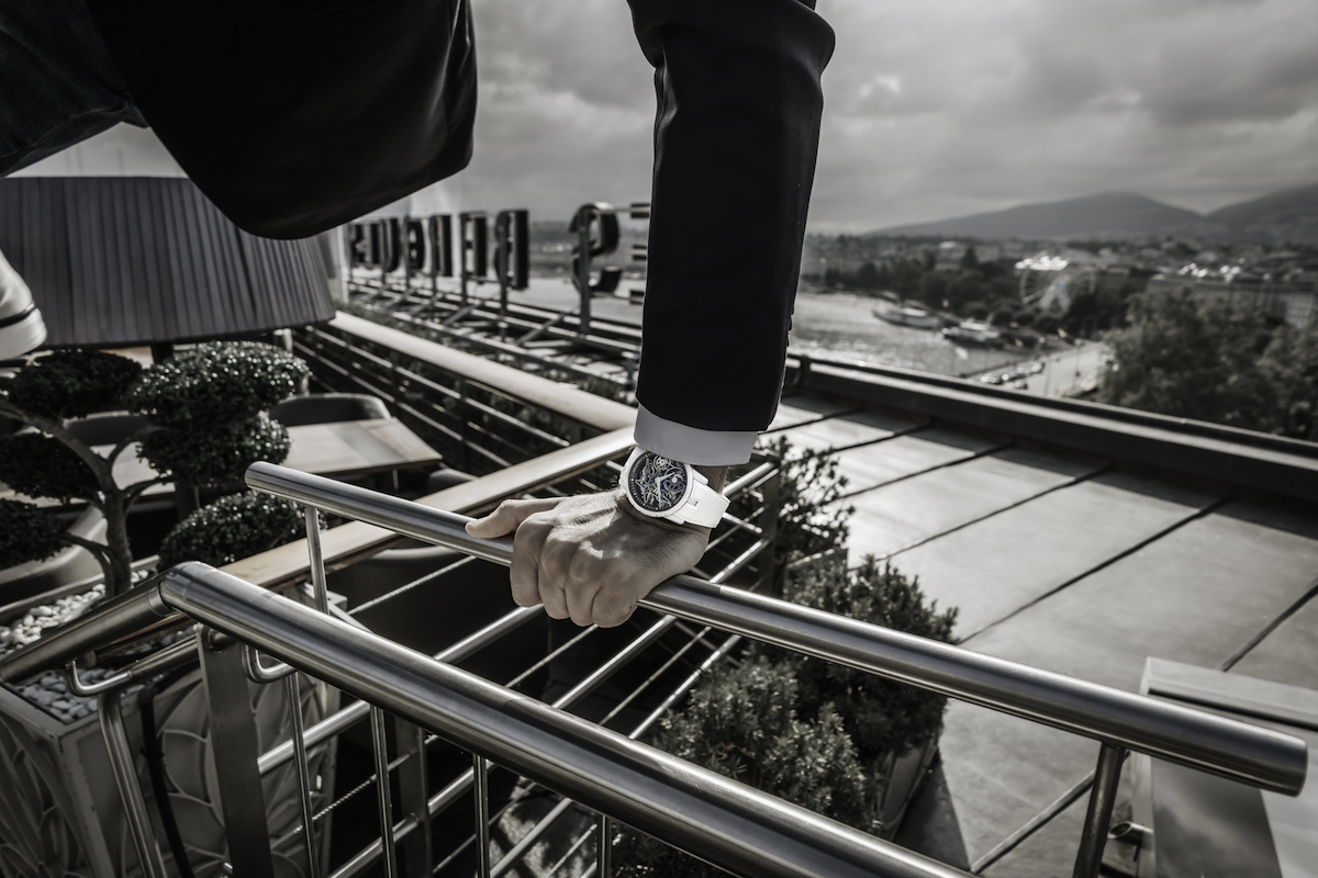 此專門研發的獨特材質不僅能抵抗紫外線、人造光與自然光以達至絕佳的穩定性,並且額外添加顏料,令其顯得愈發純白;為了貫徹通身皎潔的美感,此腕錶配搭了白色橡膠錶帶,完美成就一款令人震撼的藝術作品。