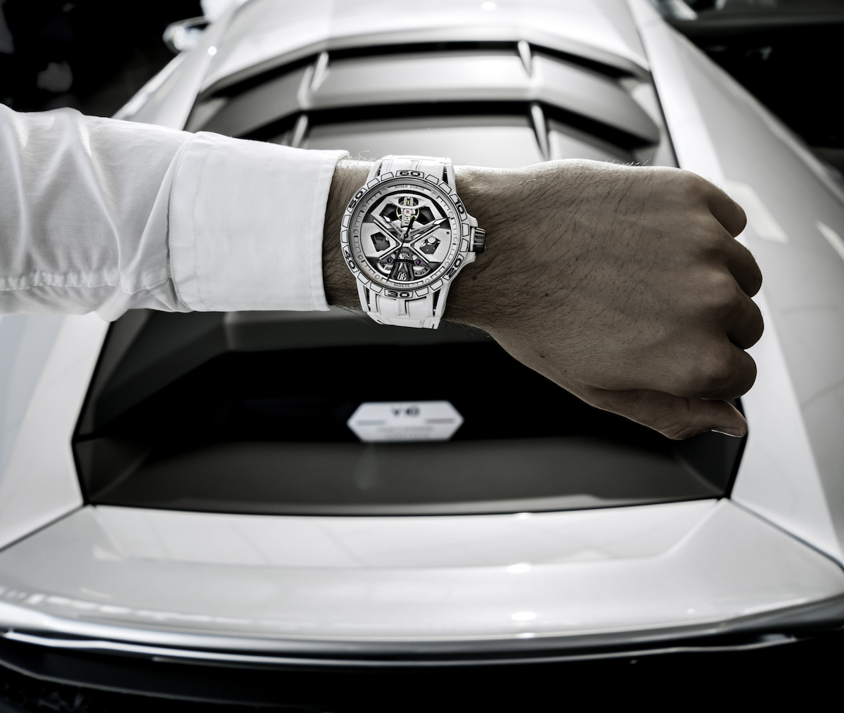 此款白色CCF陶瓷複合纖維Excalibur Spider Huracán腕錶是Roger Dubuis羅杰杜彼與Lamborghini Squadra Corse藍寶堅尼賽車部門傲然推出的最新力作,猶如賽車引擎的作品設計,精湛融合義大利超級跑車的獨特基因與Roger Dubuis羅杰杜彼的卓越製錶技術,展現該合作關係崇尚的卓絕性能和震撼美學。