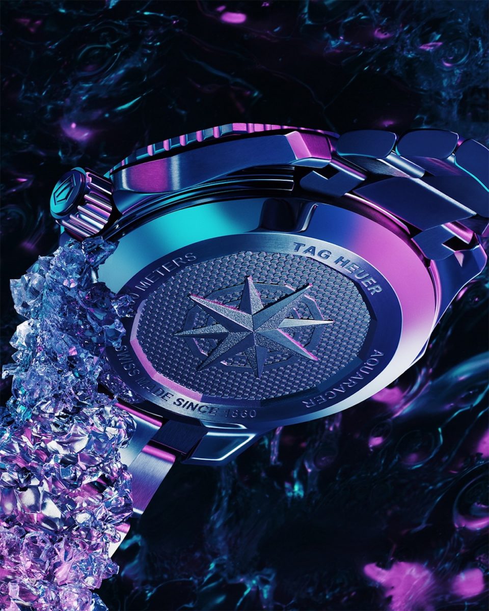 為了突顯此款腕錶的冒險探索精神,每一枚新款Aquaracer Professional 200腕錶底蓋有著全新指南針圖案設計,有別於以往一直沿用的頭盔圖案。底蓋背景採用了與 Aquaracer Professional 300一致的六邊形紋理。