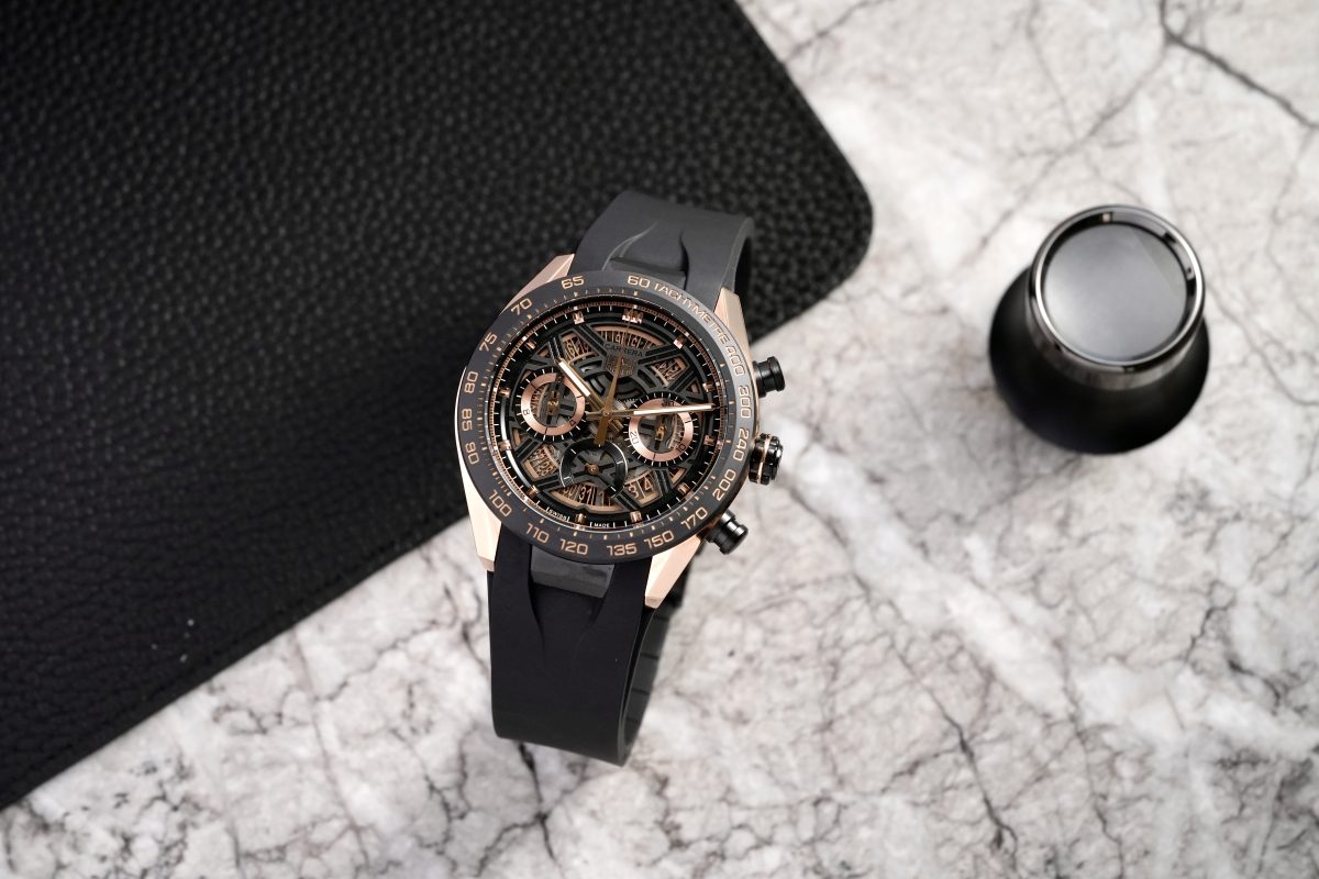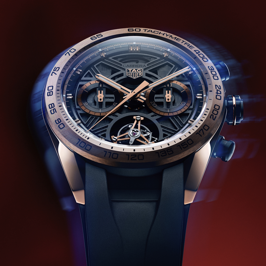 TAG Heuer Carrera Chronograph Tourbillon Extreme Sport 陀飛輪計時腕錶 – 玫瑰金款/錶徑:44mm/錶殼:18K 5N玫瑰金/機芯:TH20-09機芯/防水深度:100m/建議售價 NTD 1,076,800