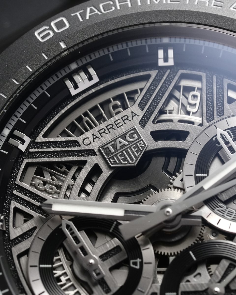 全新腕錶的核心特色為其獨特的鏤空錶盤,以汽車底盤結構為靈感並經過巧妙重新設計後,使整體更為清晰易讀。看似複雜的錶盤圖案,由醒目的黑色線條勾勒組成,同時面盤中心微妙隱藏了品牌的經典標誌。此一設計也激發泰格豪雅的錶迷們更渴望深入探索其精妙機械的魅力。