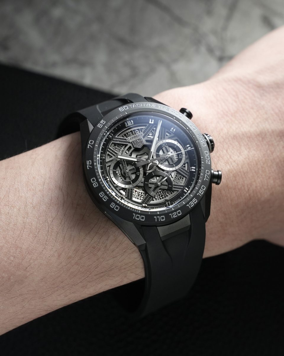 TAG Heuer Carrera Chronograph Extreme Sport 計時腕錶- 曜黑款/錶徑:44mm/錶殼:2級鈦金屬/機芯:TH20-00機芯/防水深度:100m/建議售價 NTD 275,900
