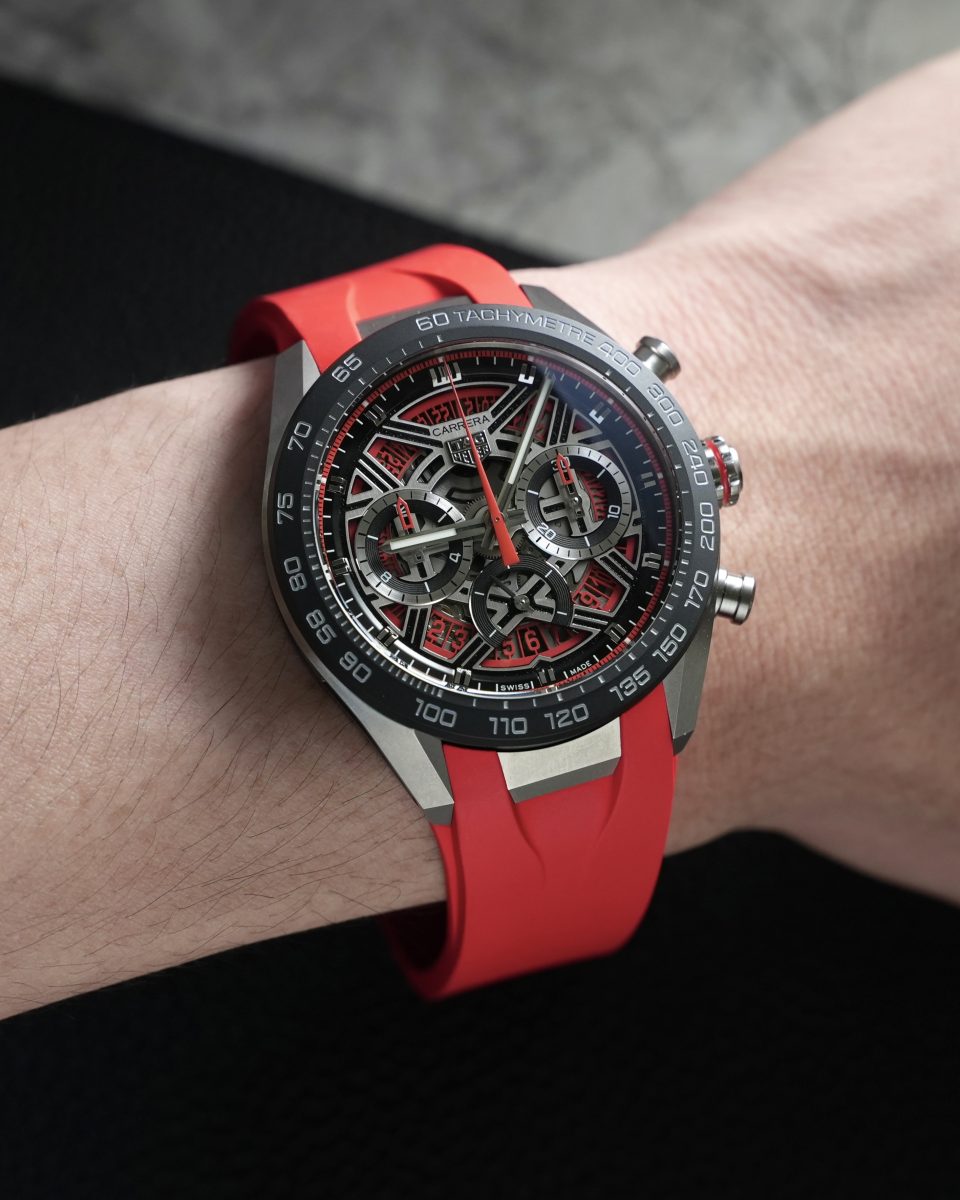 今年所推出的最新 Extreme Sport 版本,旨在進一步加深品牌與賽車 DNA 的連結,擁有濃厚運動風格的外觀設計,大膽極致的重新詮釋品牌於 2016 年推出便備受讚譽的鏤空面盤作品 Carrera Heuer 01 腕錶,並將品牌傳奇的賽車傳承與尖端材質和創新設計完美融合,兩款最新作品 TAG Heuer Carrera Chronograph Extreme Sport 計時腕錶和 TAG Heuer Carrera Chronograph Tourbillon Extreme Sport 陀飛輪計時腕錶,均充分體現了運動精神和精湛製錶技藝。