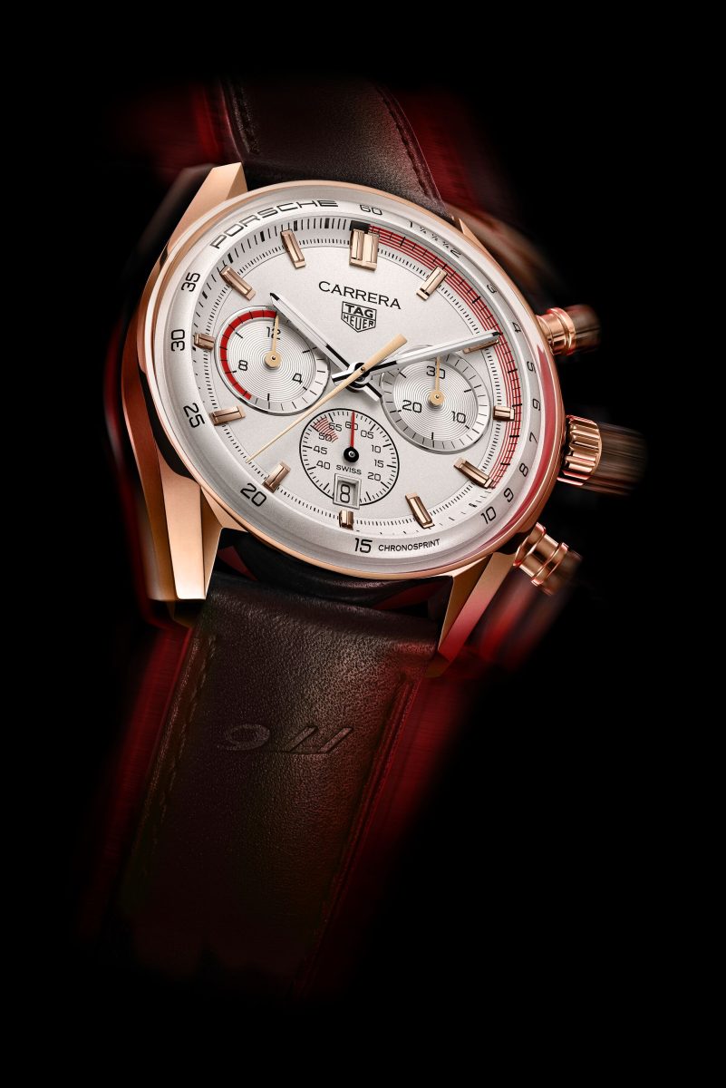 TAG Heuer Carrera Chronosprint x Porsche 計時腕錶完美融合頂尖時計工藝與優秀賽車性能,代表兩個傳奇品牌的合作巔峰。TAG Heuer 泰格豪雅與Porsche保時捷共同抱持對卓越成就、非凡表現與雋永設計的追求,再一次以腕錶傑作精湛演繹雙方共同的歷史以及對賽車的熱情。
