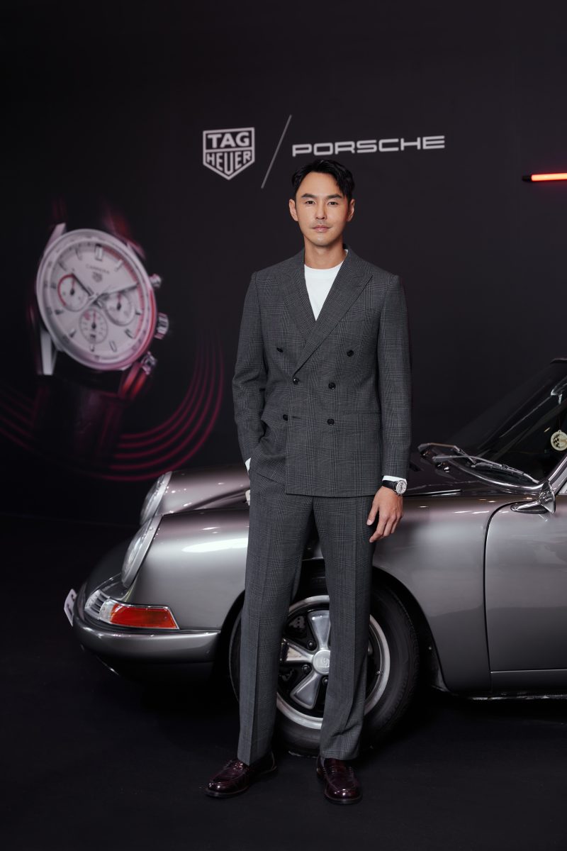 曾是專業賽車手、也是保時捷跑車頂級藏家的金馬影帝阮經天,佩戴 TAG Heuer Carrera Chronosprint x Porsche 計時腕錶精鋼款帥氣現身