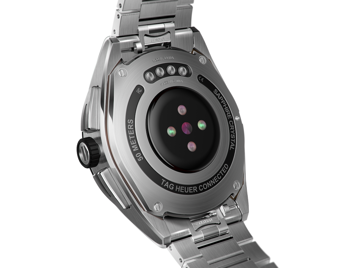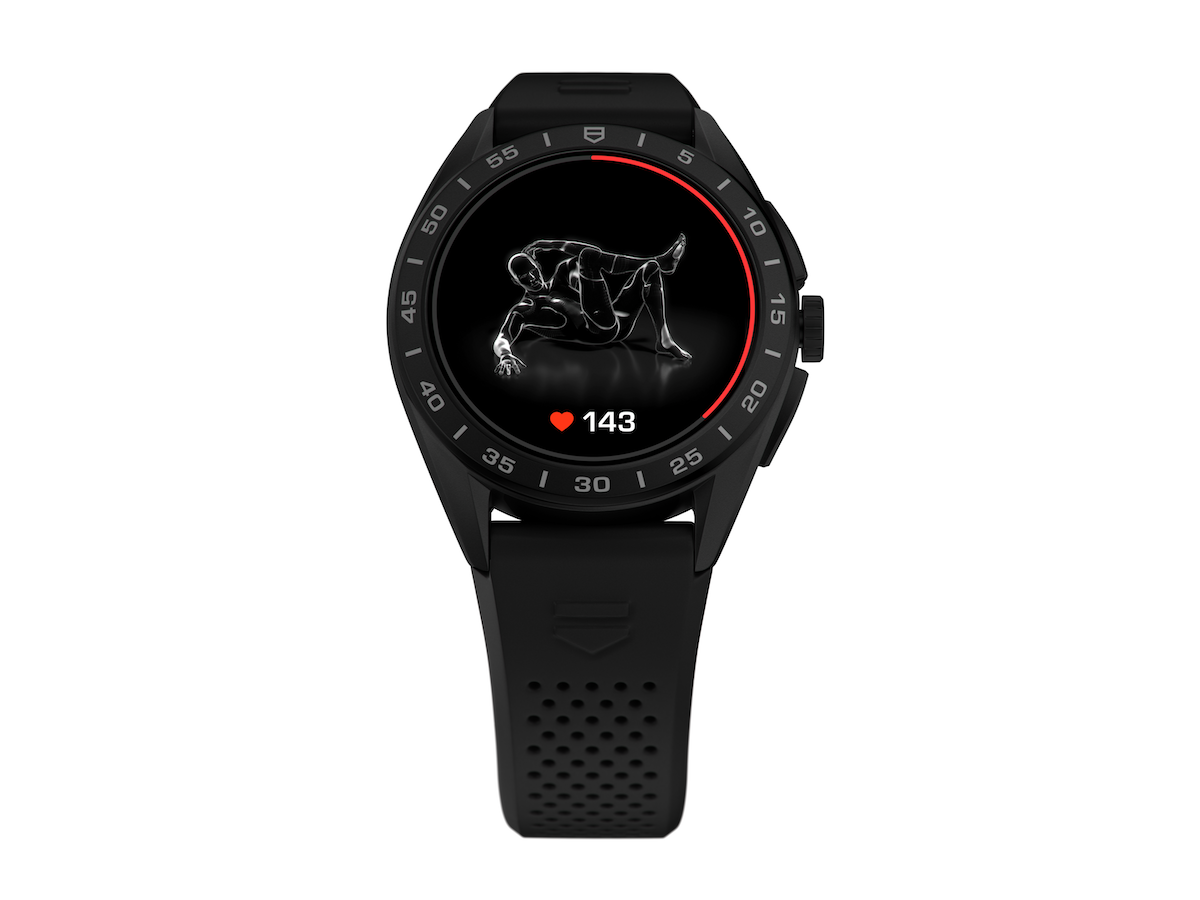 泰格豪雅Connected Calibre E4智能腕錶/錶徑:45mm/機芯:Mod Connect機芯處理器:Qualcomm Snapdragon 4100+/430mAh全天候電池/電池壽命:一整天(跑步1小時,步行2小時,包括健身), 一整天(打高爾夫球5小時,包括健身)/防水深度:50m/建議售價: NTD 67,300(橡膠錶帶)NTD 74,000(精鋼錶鍊)NTD 82,400(黑色DLC 2級鈦金屬錶殼)
