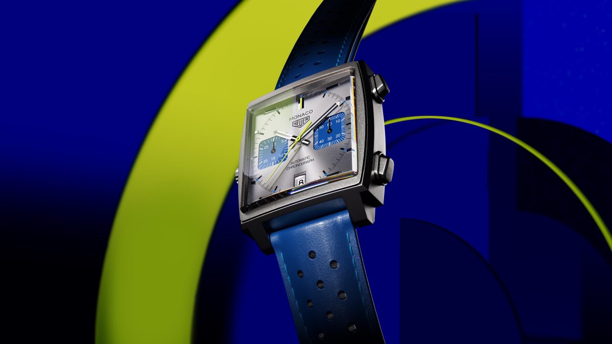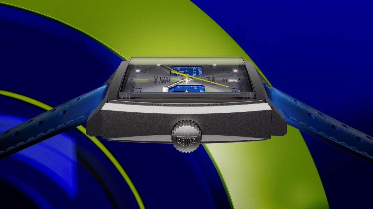 全新 TAG Heuer Monaco 計時腕錶賽車藍限量版搭載的色調,令人想起 Talbot-Lago、Delage 以及著名的 Bugatti Type 35 等夢幻傳奇賽車所採用的顏色。3點鐘與6點鐘位置的獨特方形小秒盤及計時盤與錶帶採用濃郁鮮明的湛藍色調,而時標則呈現較淡的水藍色。錶面以顯眼的萊姆黃點綴裝飾,不僅為腕錶增添一抹令人耳目一新的亮點元素,也讓錶款整體配色更臻完美。
