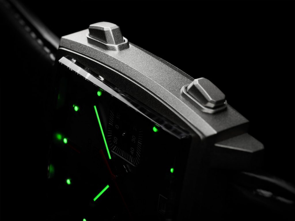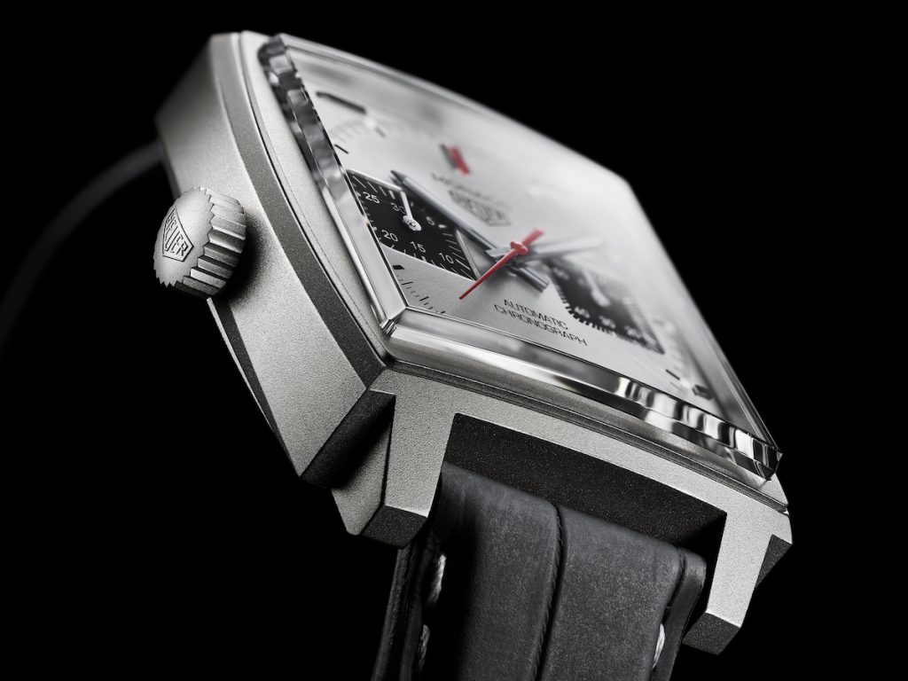 全新Monaco腕錶跳脫常規,首次採用鈦金屬材質,極致輕盈但強悍依舊,再透過噴砂處理形成霧面效果,凸顯材質本身的美感。