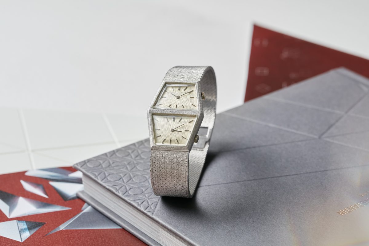 鐘錶功能始終源自日常生活需求,在沒有電力的時代,三問錶的發展就足以證明這點。於是一旦洲際旅遊對那些熱衷於遠行的人變得愈來愈容易,多時區或世界時間錶款也自然跟著流行起來。江詩丹頓沒有錯過這一波。早在1960 年代品牌就已經有在提供具備多個時區的錶款,像是這只1969 年的白金腕錶便搭載了兩顆1050 機芯。機芯裝配在八角形的錶殼裡,兩個時區皆以梯形顯示,錶款透過嚴格的幾何方式反映出此地和另一地時間的流逝。