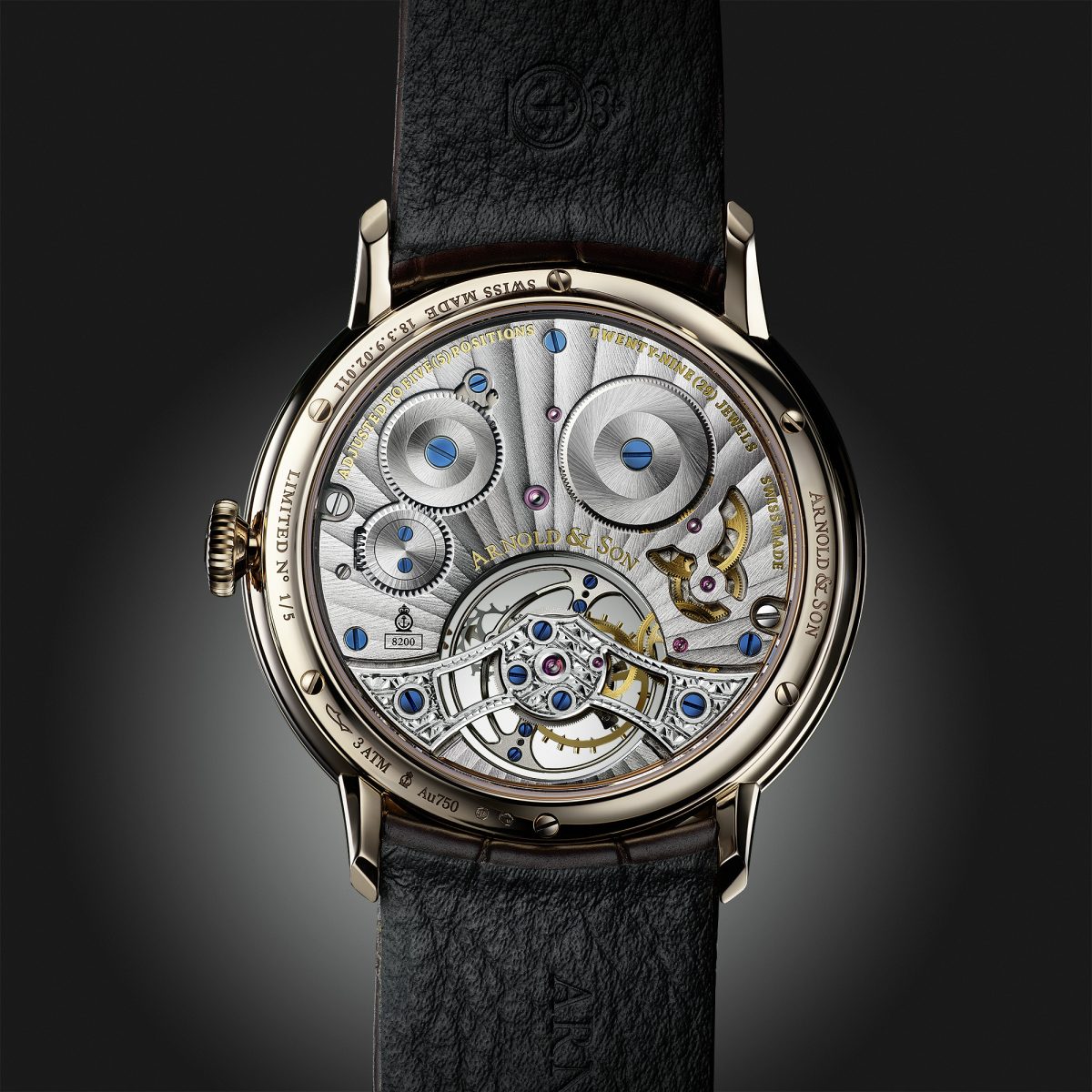 搭載自製手上鍊機芯A&S 1512,除了擁有長達90小時動力,還能夠以卓越的精準度追蹤月相變化,每122年才會與真實月球變化出現一天的誤差。為了方便使用,Arnold & Son在錶背融入輔助月相指示器,讓配戴者得以更快速精確地調校月齡。