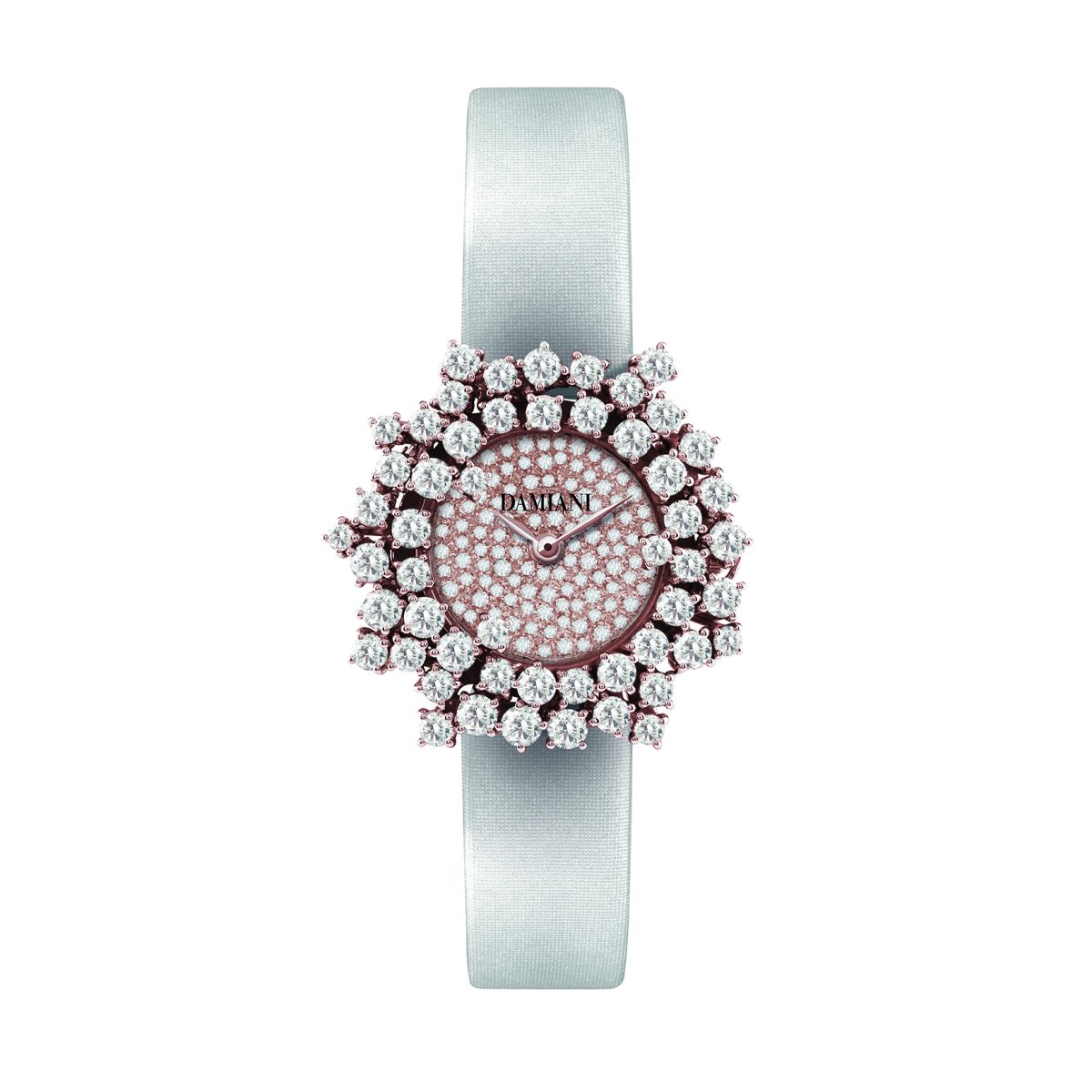 DAMIANI Mimosa含羞草系列18K玫瑰金鑽錶/密鑲鑽石錶盤/白色緞面錶帶/錶徑:32mm/建議售價:NTD 1,100,000