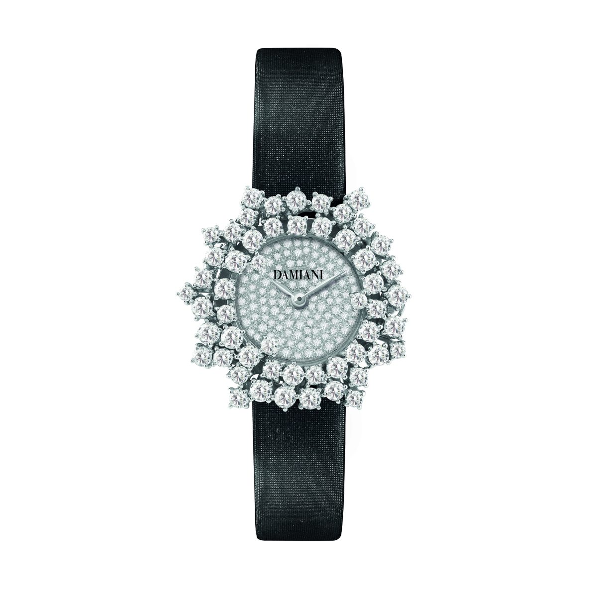 DAMIANI Mimosa含羞草系列18K白金鑽錶/密鑲鑽石錶盤/黑色緞面錶帶/錶徑:32mm/建議售價:NTD 1,100,000
