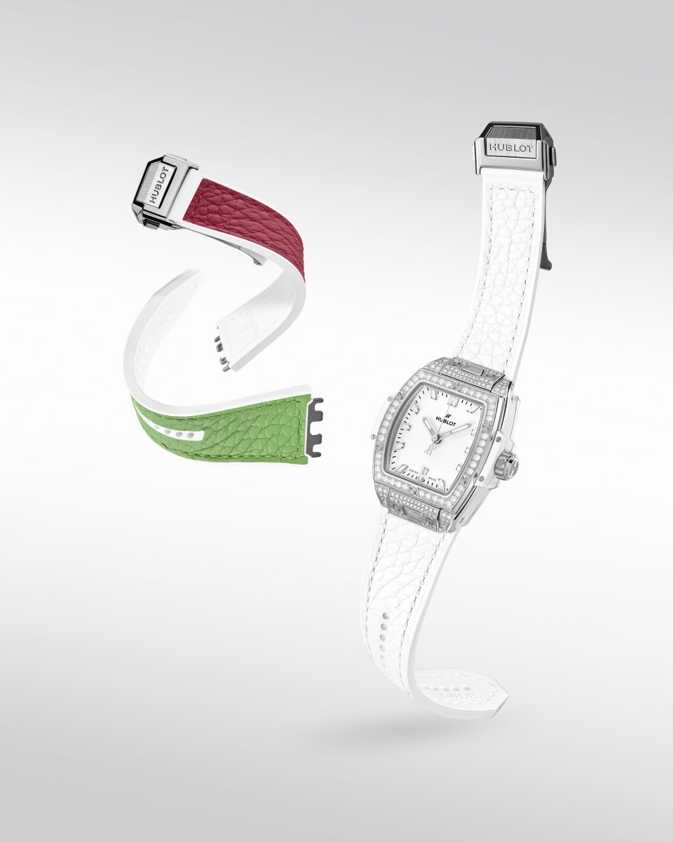 此外,腕錶還擁有宇舶專利的”One Click”單鍵快拆錶帶裝置,讓母親可以根據不同場合搭配造型,輕鬆更換錶帶,完美襯職的出入各種場合。這樣貼心的設計不僅展現了錶款的多樣性,也象徵了媽媽在生活中扮演的多重角色,從家庭主婦到職場精英,從溫柔的母親到獨立的女性。無論是皇金或鈦金材質,搭配黑色或白色錶盤,這款錶都將吸引所有目光,為媽媽打造出自信優雅的百變風采,獻給媽媽一份能無時無刻可以陪伴她的禮物,同時成就她在時尚舞台上的閃耀時刻!
