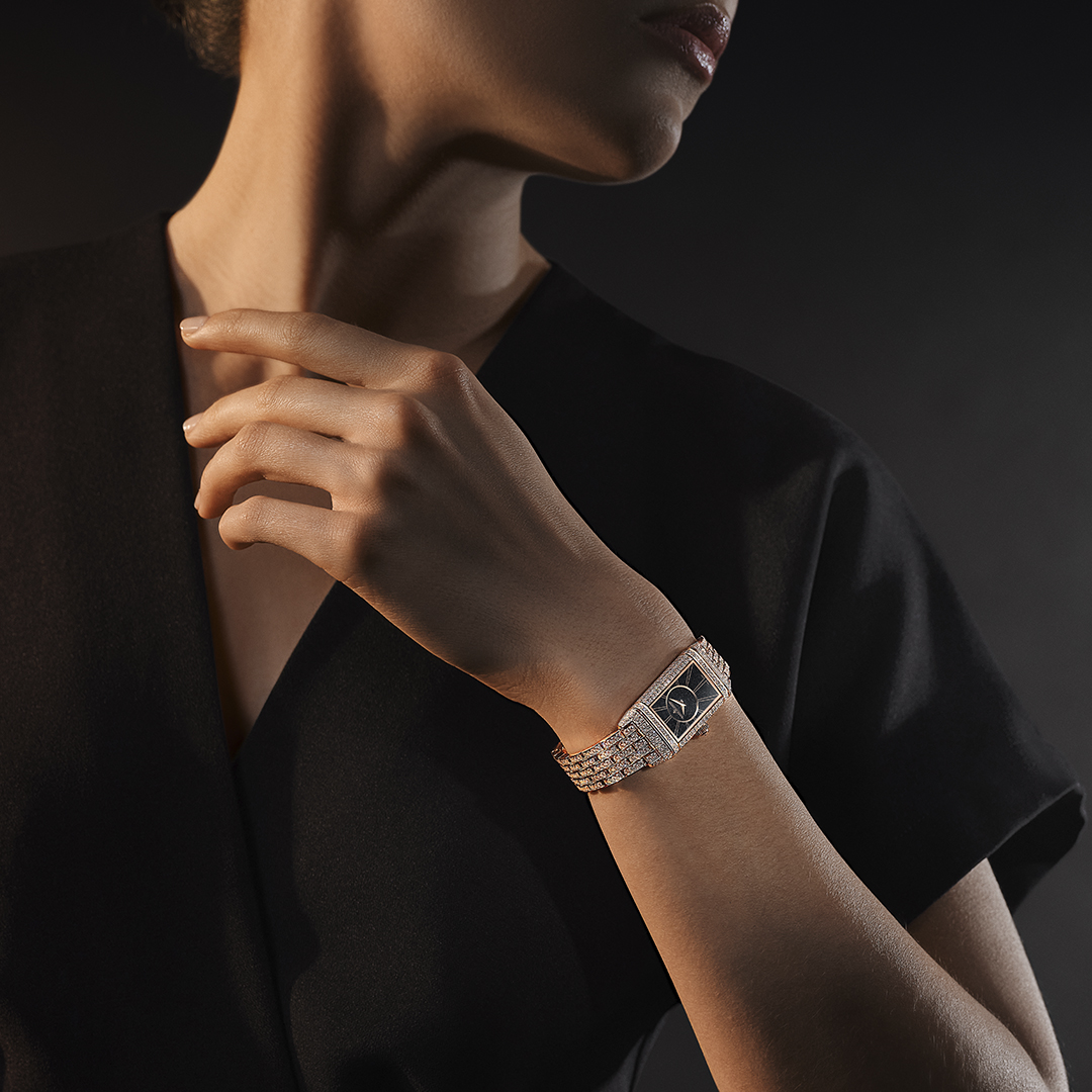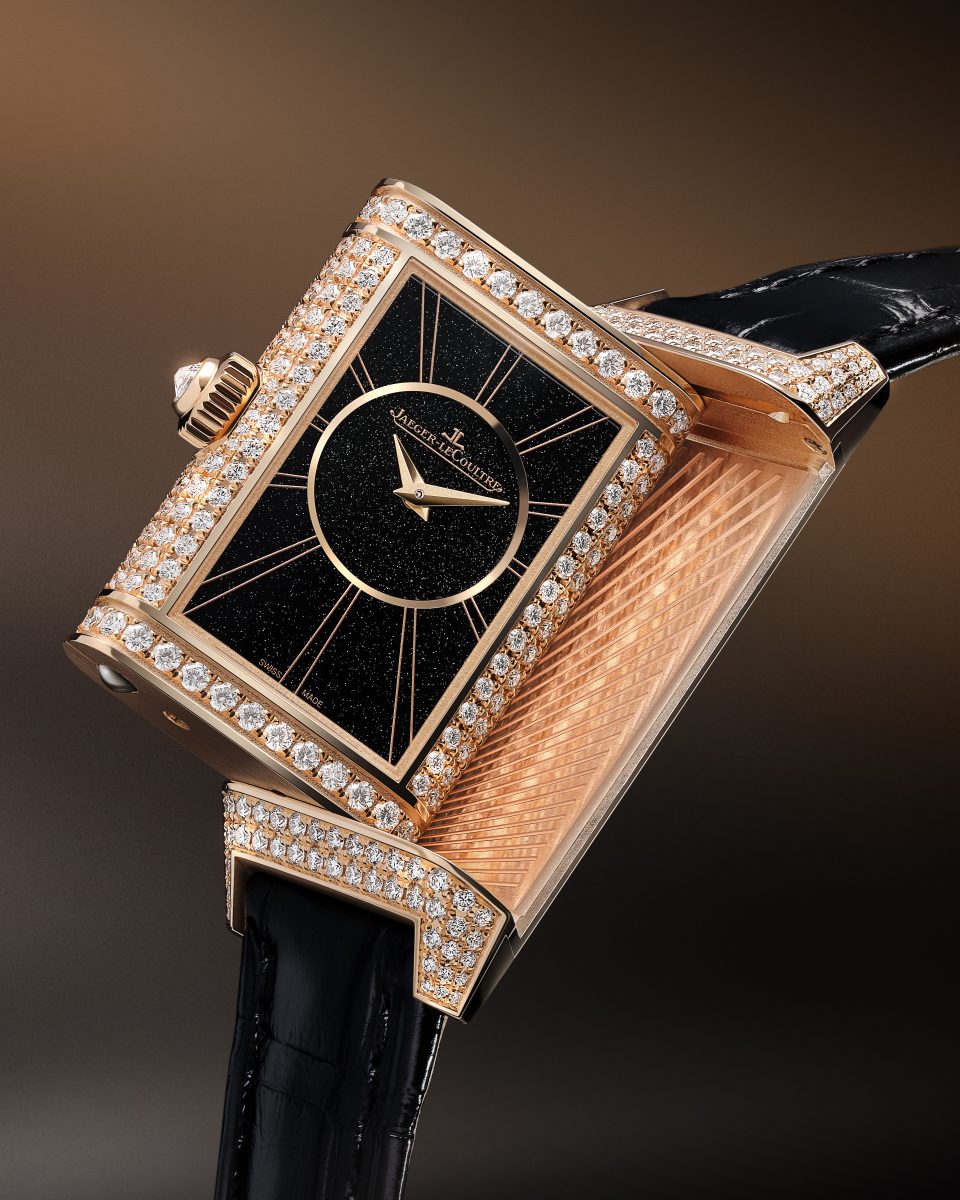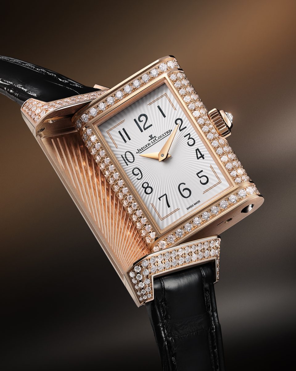 積家大工坊從創立初期已致力製作女士腕錶,秉持此開創先河的精神,積家今年推出兩款Reverso One翻轉系列玫瑰金腕錶,融匯精湛高級製錶技術與非凡珠寶工藝,每一處細節都極盡考究。Reverso One Duetto Jewellery翻轉系列雙面珠寶腕錶配備全新全鑲鑽錶殼,發掘Reverso翻轉系列腕錶作為製錶經典的無限潛力,不斷激發大工坊製錶師與珍稀工藝工作坊(Métiers Rares)工匠大師的源源靈感。兩款全新時計分別配備亮黑色皮革錶帶和密鑲鑽石的玫瑰金錶鏈。