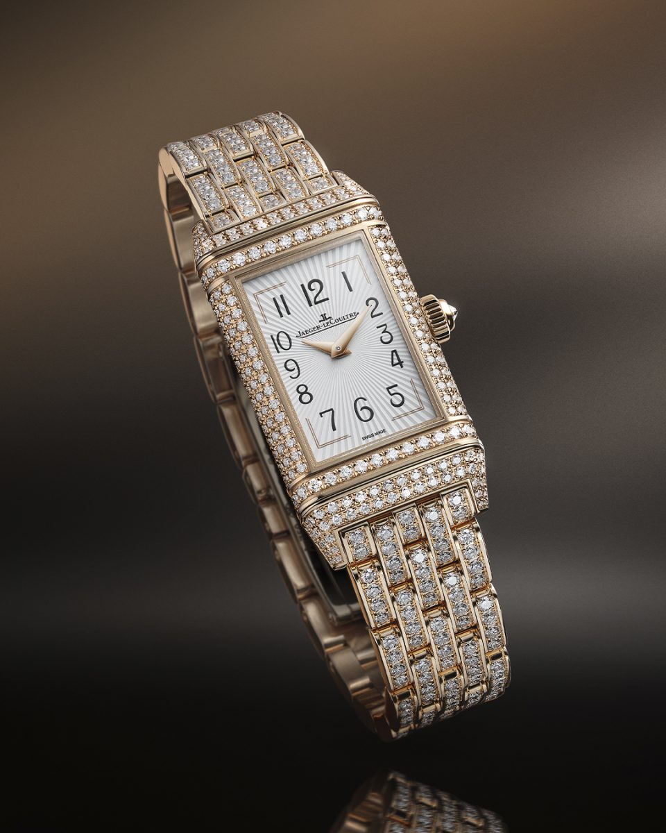 REVERSO ONE DUETTO JEWELLERY翻轉系列雙面珠寶腕錶(玫瑰金錶鏈款式)/錶徑:40 x 20mm/機芯:積家844手動上鍊機芯/動力儲存:50小時/鑽石:719顆鑽石(8.15克拉)/建議售價: NTD 4,150,000