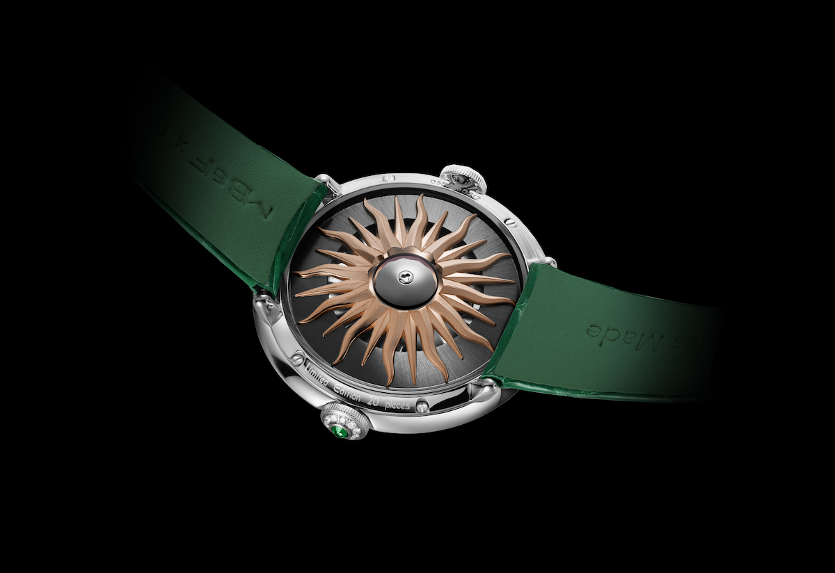 寶格麗與 MB&F的合作淵源,要從寶格麗腕錶創意總監 Fabrizio Buonamassa Stigliani 與 MB&F 創辦人暨創意總監 Maximilian Büsser 的緣分說起,原本因為工作互相賞識的兩位,漸漸發展出深厚的友誼。兩種不同的思維透過對話與專業技藝的交融,激盪出令人耳目一新的女性錶款 ─ FlyingT Allegra