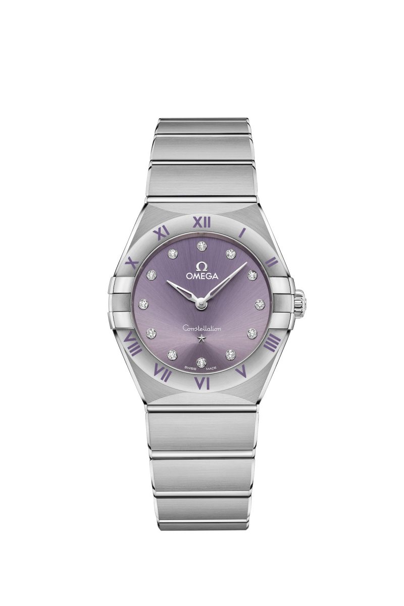 星座系列 28 毫米腕錶,在這個粉彩系列中,每個人都能找到符合個人風格的作品,包括這款搭載廣藿香花紫色錶盤與對應錶圈的版本。為了追蹤時間,歐米茄在每個小時設置一枚鑽石,並配上 18K 白金指針。建議售價$121,000
