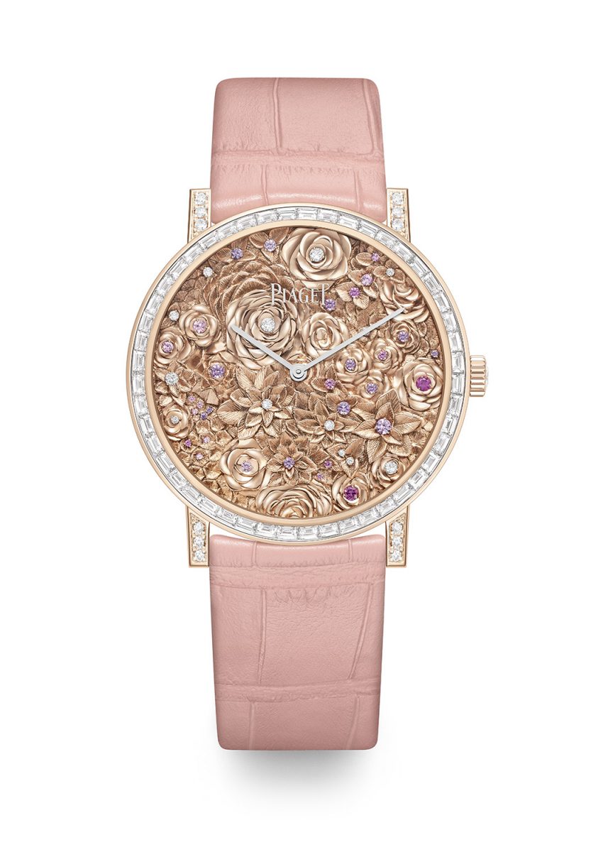 象徵著愛與歡樂的伯爵玫瑰,同於Holiday Season作品中絢麗盛放。以鍾愛玫瑰而名聞遐邇的伯爵第四代傳人伊夫‧伯爵(Yves G. Piaget)命名,PIAGET Rose珠寶再現玫瑰靈動瞬間。盛放的花束戒指,首次推出耳扣設計的耳環,優雅兼具風格提供配戴者別樣穿戴選擇,系列作品皆採用伯爵標誌性宮廷式雕刻飾紋,勾勒出嬌艷欲滴的動人玫瑰。既有花朵獨自盛放的萬眾矚目,亦不容錯過豐滿花束帶來的繁盛愉悅。呼應節慶送禮分享的慷慨之情,出自伯爵傑出工坊全球限量8只的Altiplano系列18K玫瑰金金雕玫瑰超薄手動上鍊腕錶則以非凡工藝驚艷世人。集結金雕、裝飾寶石、寶石雕刻與琺瑯工藝等複雜工藝技術於一身,每一支Altiplano超薄腕錶皆是由伯爵傳世巧匠親手打造,讓瑰麗花朵躍然錶盤之上,芬芳無限鼓動人心。