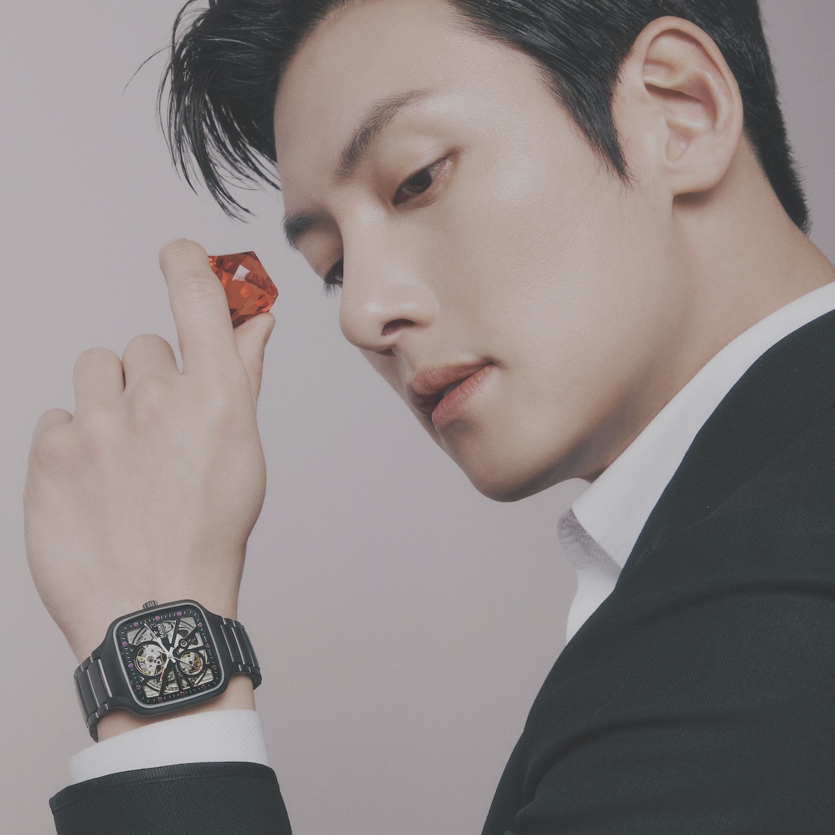 有一種設計,不需張揚,卻能在靠近時感受到那份獨有的重量。作為「馬年六駿」中的印記之選,這款 True Square 真我方形系列由池昌旭親自操刀,將他的個人風格化作錶盤上的一抹紅寶石,低調而深邃。最動人的細節藏在翻轉之後——透明底蓋不僅展現了 R734 機芯運行的律動美感,更鐫刻著池昌旭的韓文簽名。全球限量 987 只,致敬他的出生年份 1987。這不只是一枚擁有 80 小時動力儲存的精密時計,更是一份跨越時空的專屬印記,讓每一刻抬腕,都像是一場與偶像之間的無聲對話。