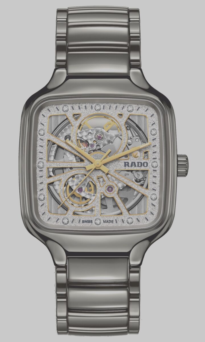 有些質感,不需要大聲張揚,只需在角度切換間流轉。這款「閃耀之選」採用 Rado 專利的電漿高科技陶瓷,將金屬般的洗鍊光澤融入陶瓷的溫潤手感中。最迷人之處在於錶盤——運用特殊的電鑄工藝,細膩地還原了鑽石粉末的晶體結構,與黃金色立體時標相互輝映。
