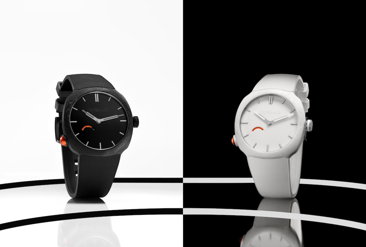 這枚充滿能量的手動上鏈機芯,源自對 HMC 500 自動機芯的徹底重構,在保留極簡 DNA 的同時,實現了極致纖薄的輕量化美學。而承載這顆心臟的容器同樣令人驚嘆,亨利慕時選用了製錶界罕見的鍛造石英纖維打造錶殼,這種比碳纖維更具表現自由度的材質,經過切割、壓製與兩次固化處理,形成了如波紋般獨一無二的霧面質地。